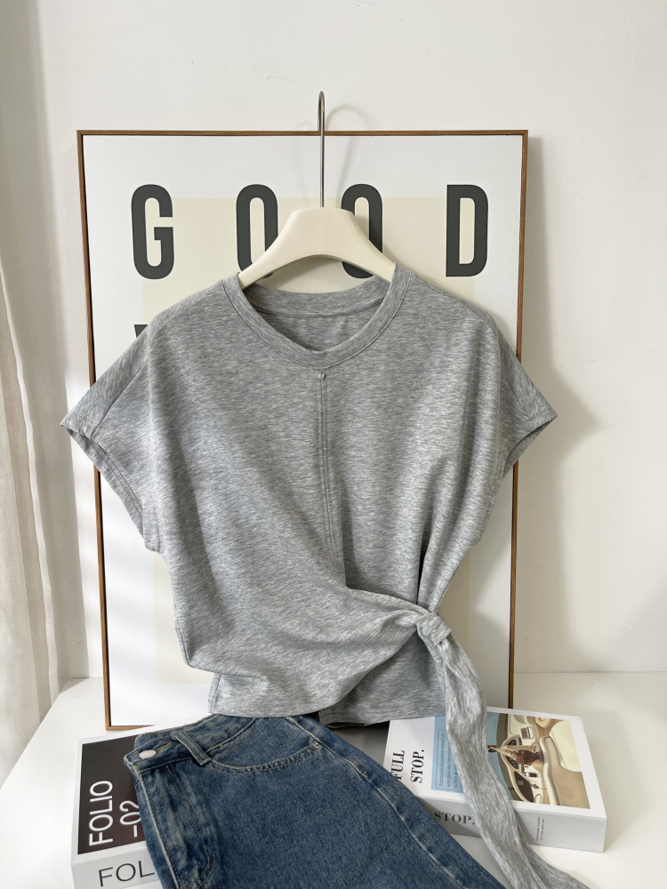 不規則下擺系帶 短袖T恤極簡收腰顯瘦 721