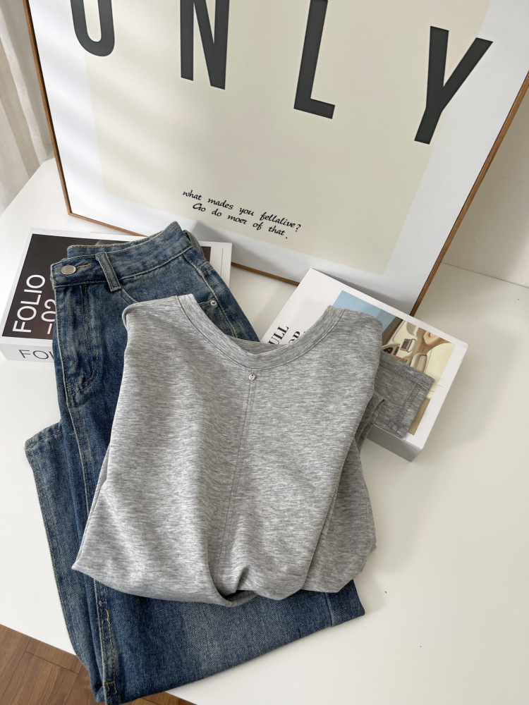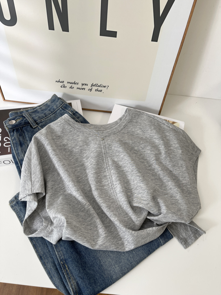 灰色寬鬆短袖T恤 中長款小眾美式上衣 706