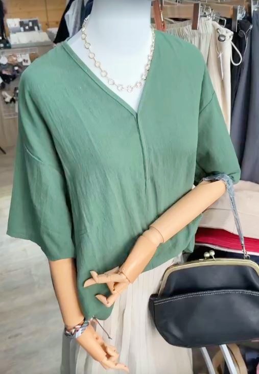 韓國復古氣質V領 輕薄棉質七分袖襯衫 730