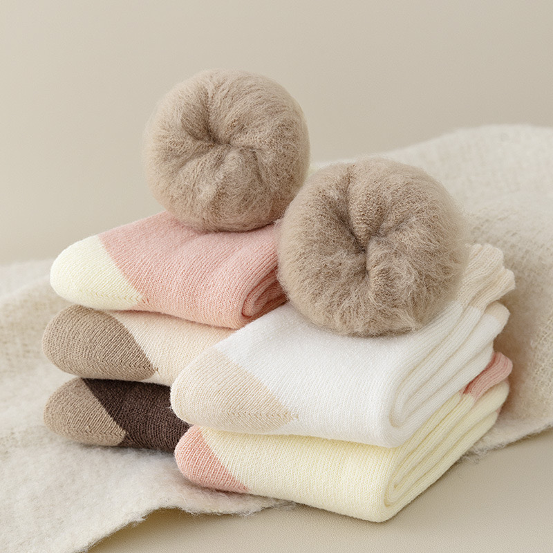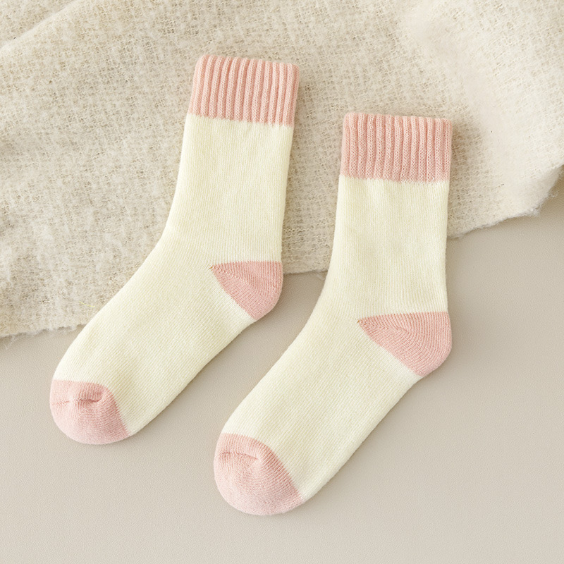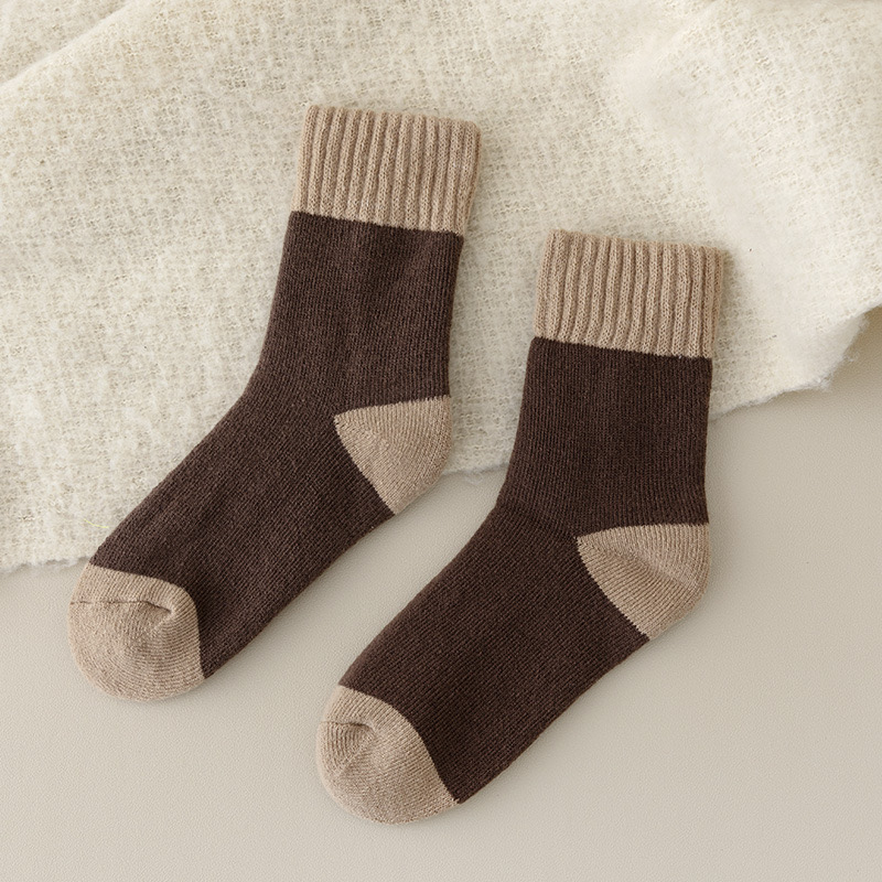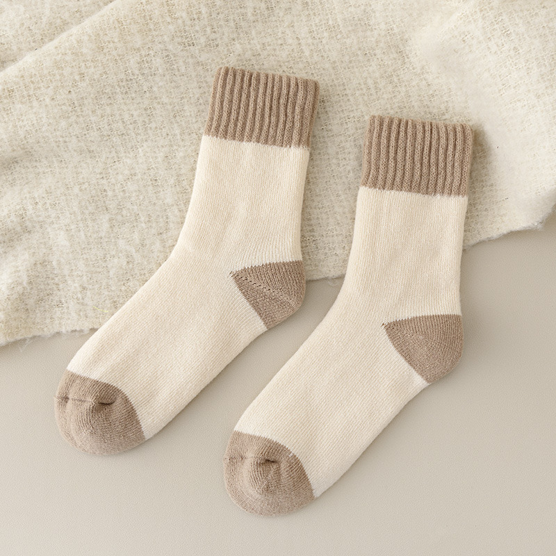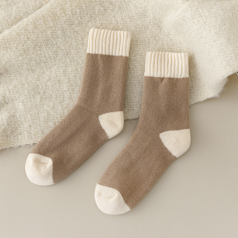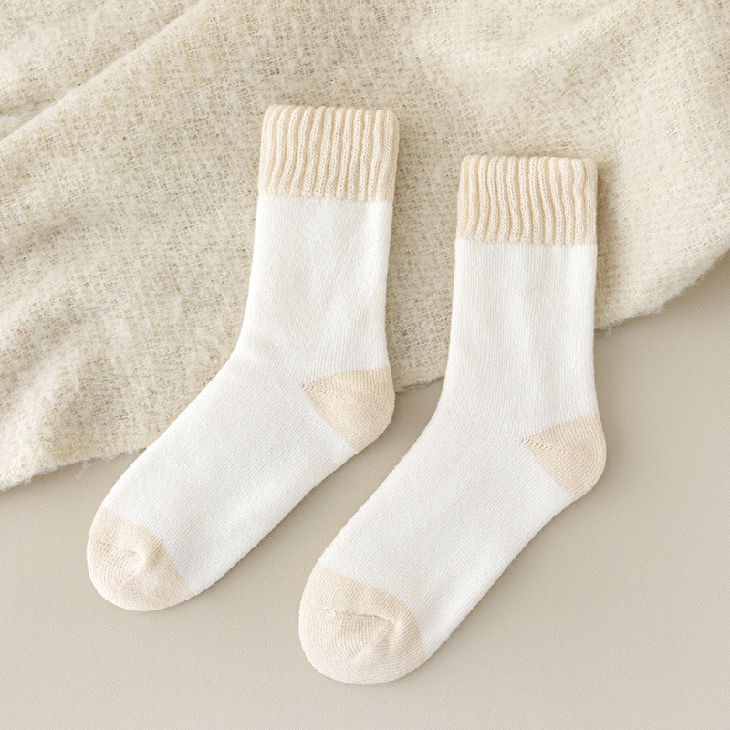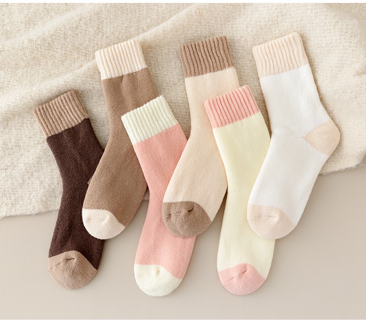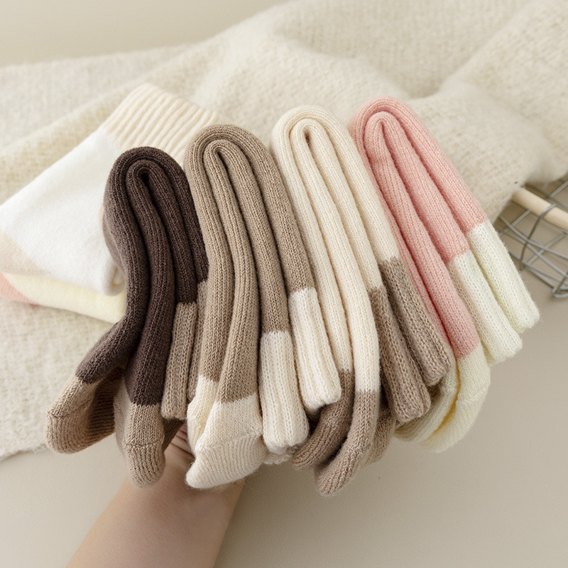 (冬襪) 加絨加厚保暖中筒襪 居家睡眠襪拼色襪 n101