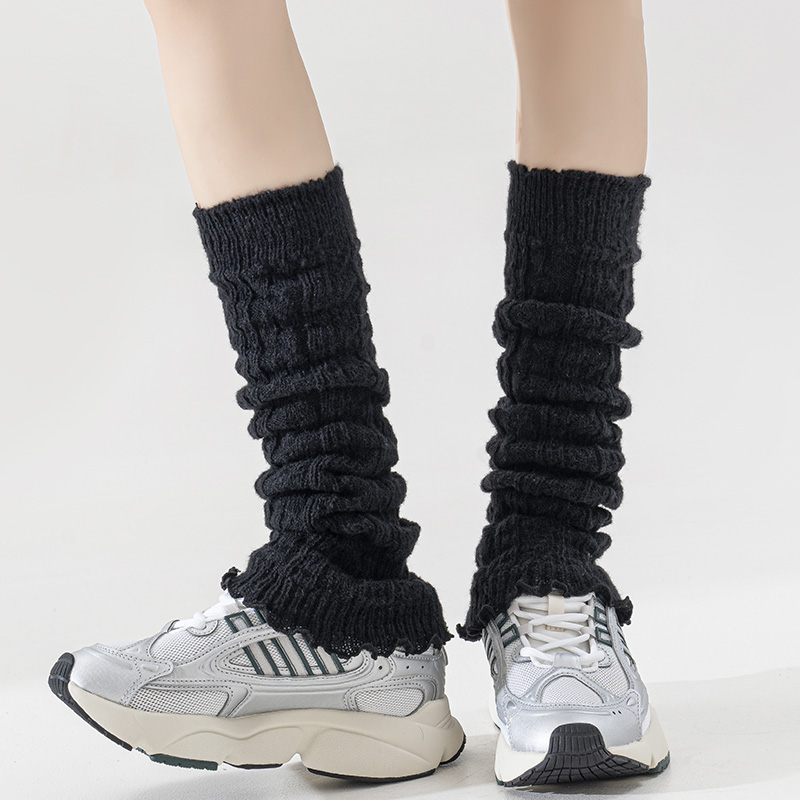 (冬襪) 網紅堆堆襪套 秋冬木耳邊 毛線針織腿套 n105