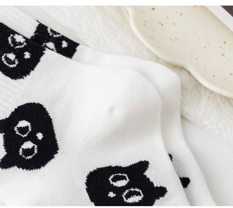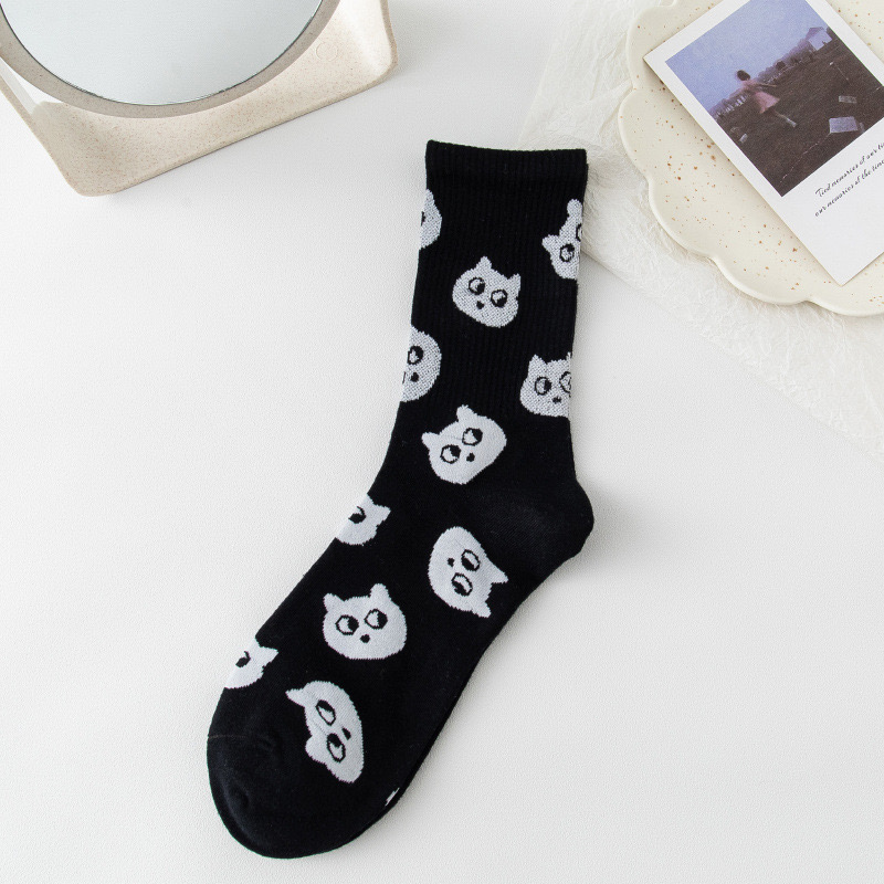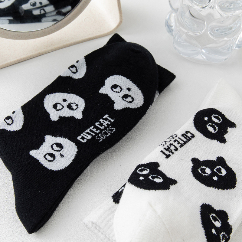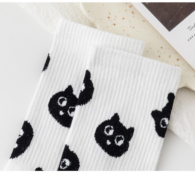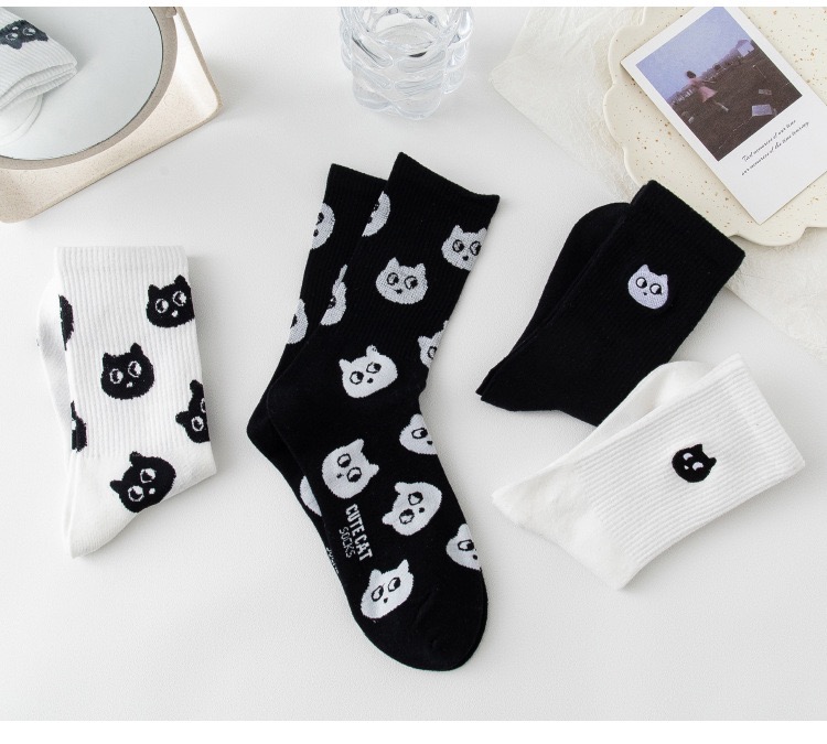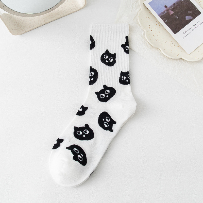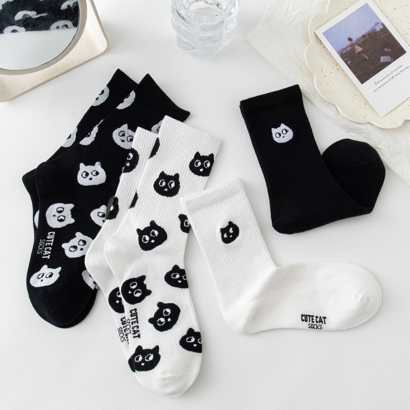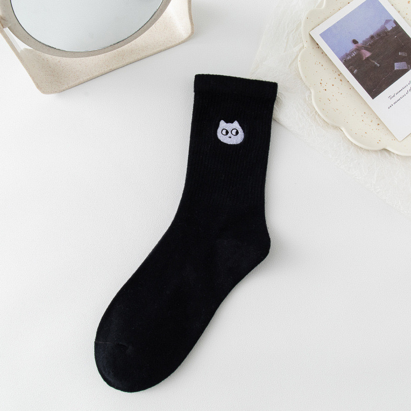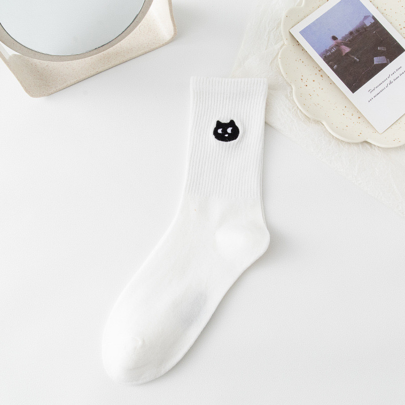 刺繡小貓中筒襪 潮系韓國薄款黑白襪 66