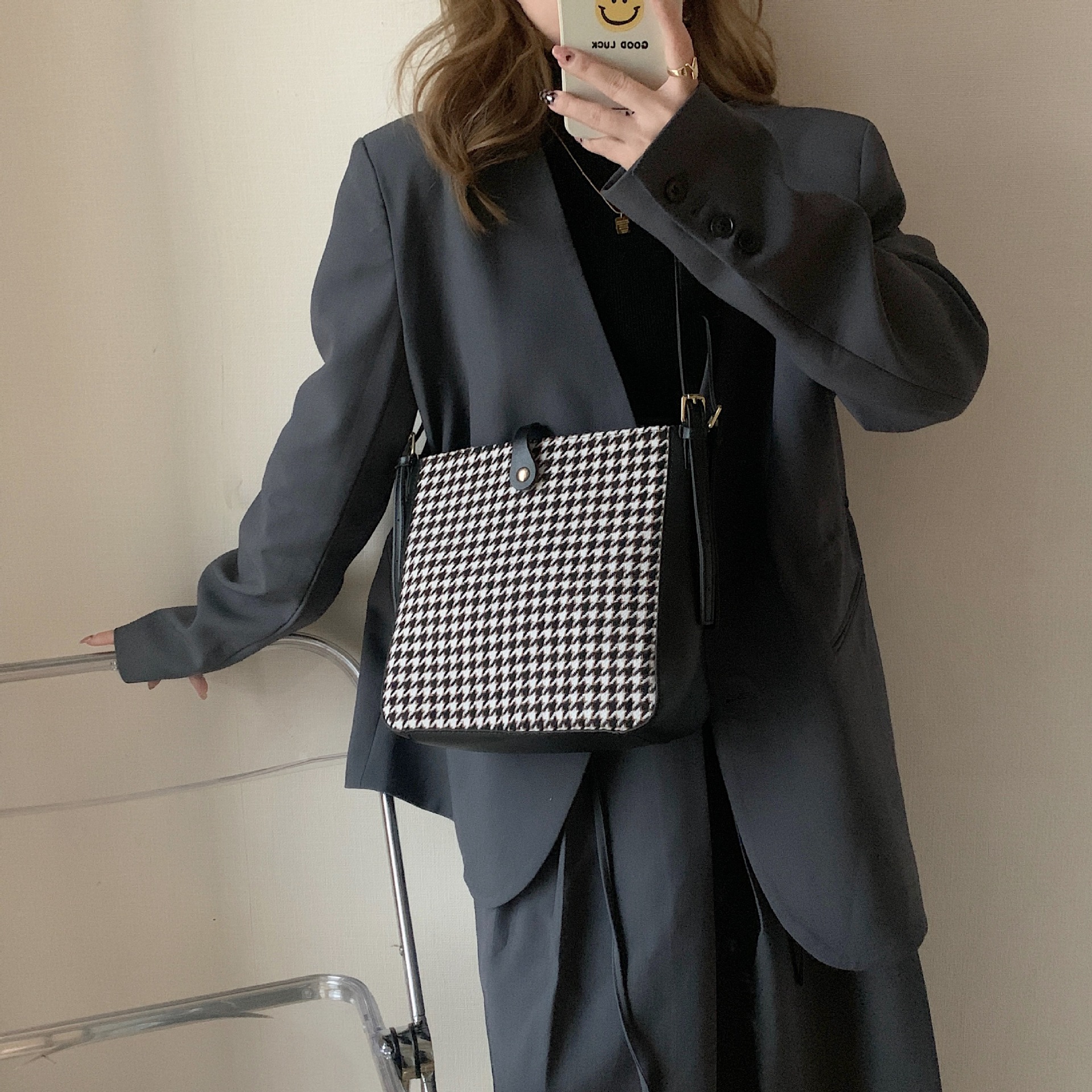 韓國款 復古絨面 撞色 單肩 手提包 ins 519