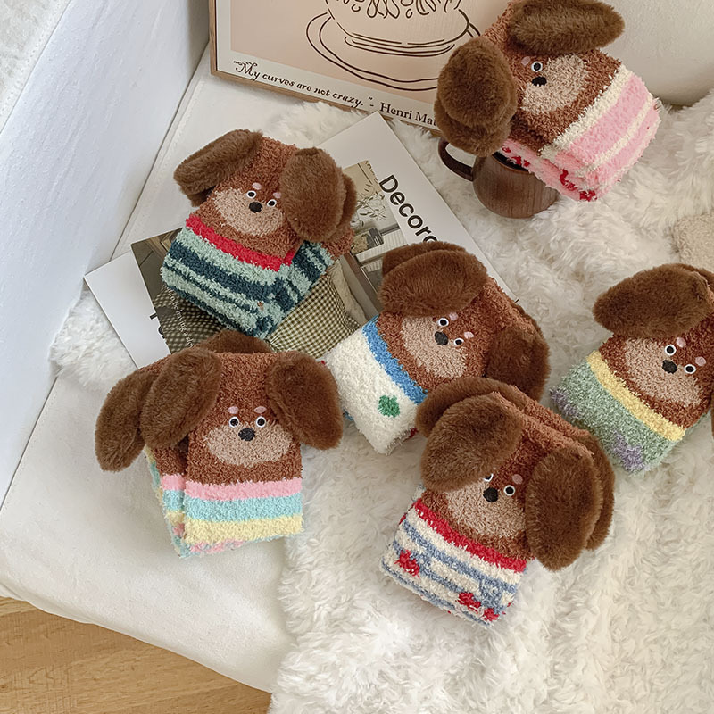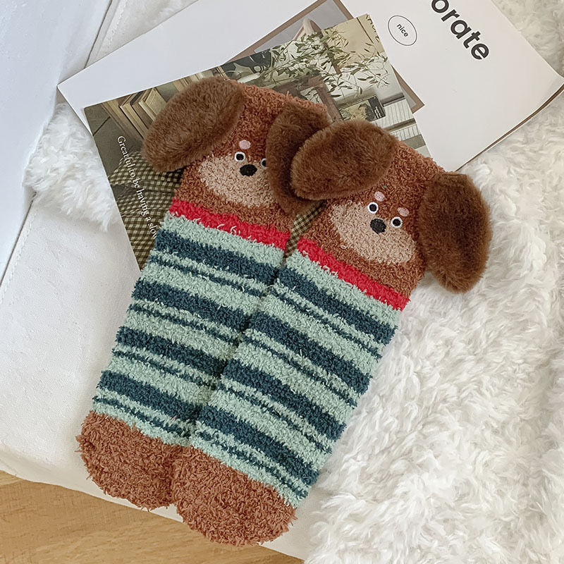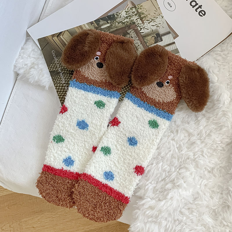 (厚襪) 可愛臘腸狗 毛茸茸加厚睡眠襪 居家地板襪 n110