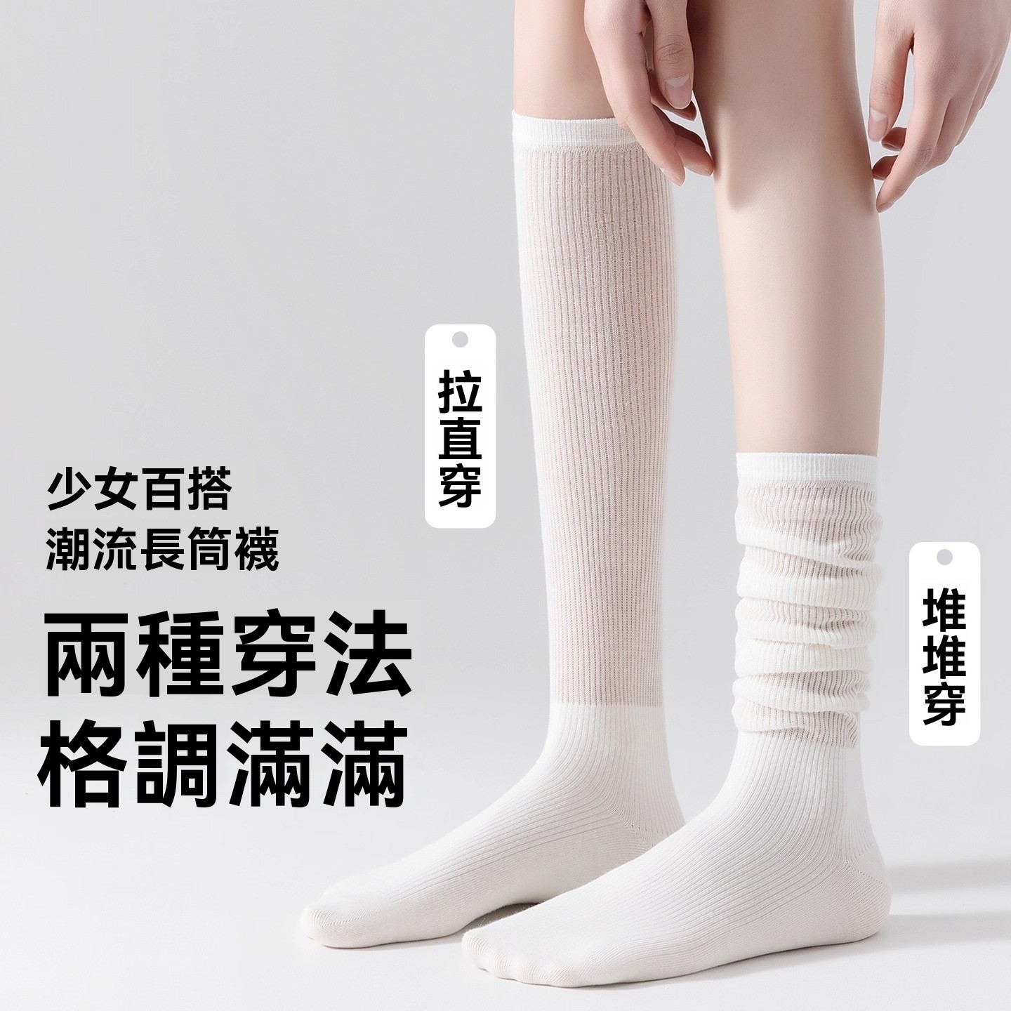 芭蕾風堆堆襪|純棉薄款·顯瘦長筒