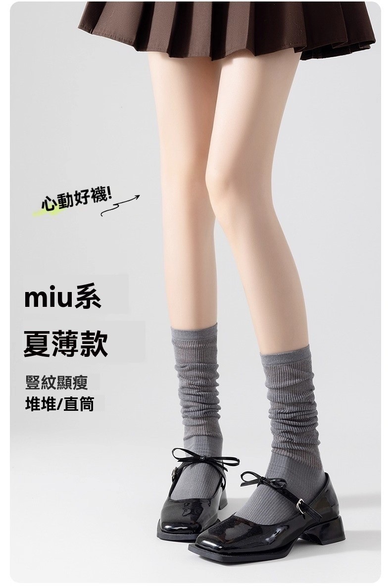 春夏季 純色透氣堆堆襪 豎條高顏值休閒襪 51