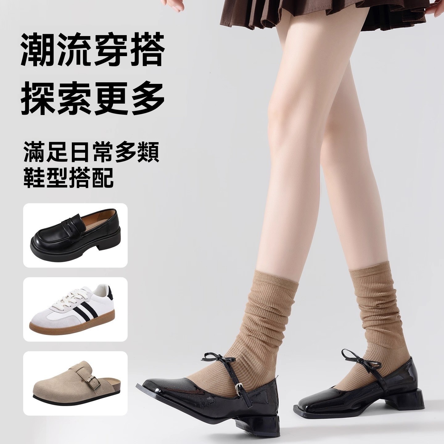 堆堆襪造型靈動百搭,可搭配運動鞋、瑪麗珍鞋或短靴,展現甜美與時尚。