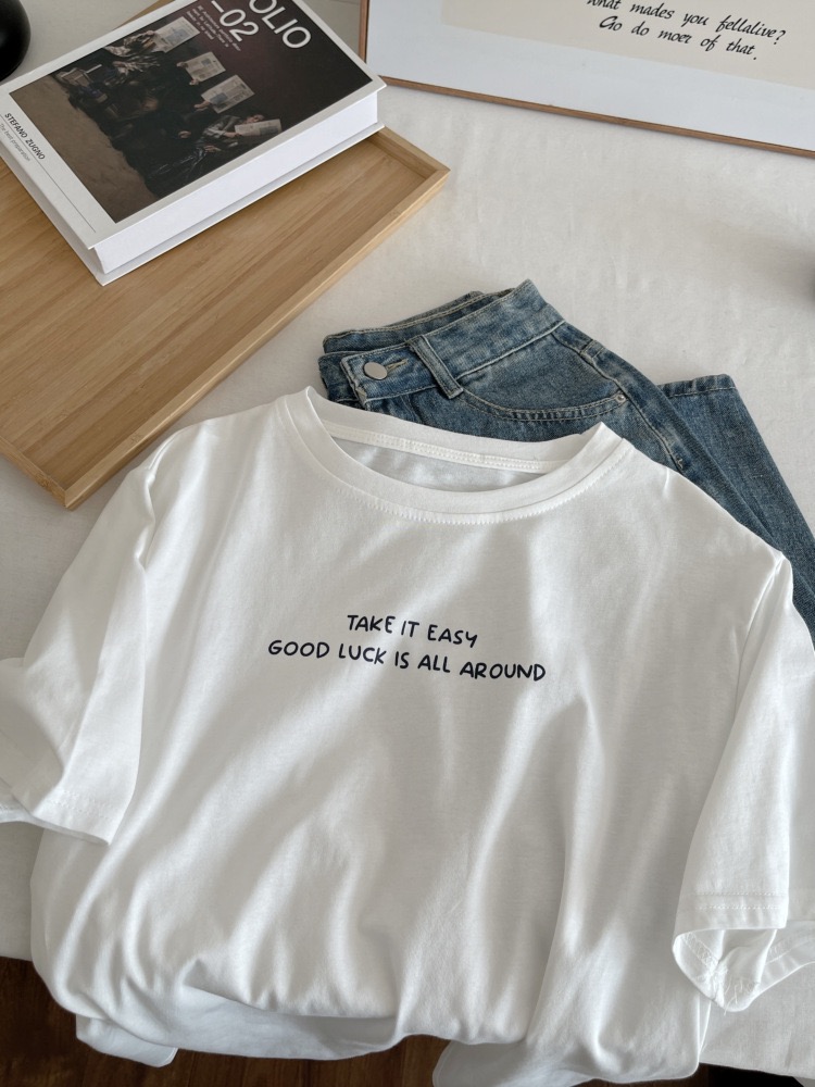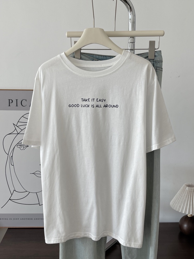 夏季白色短袖T恤 女薄款寬鬆上衣 高級感百搭 休閒時尚 氣質 潮流 簡約 爆款 n60006