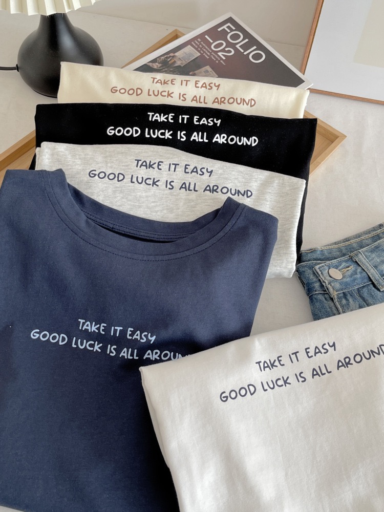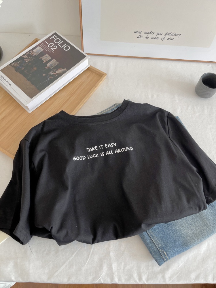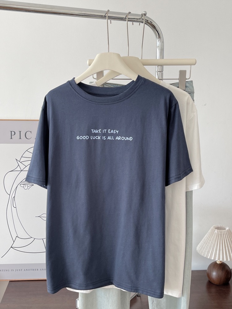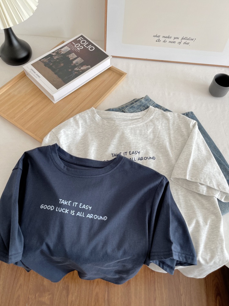 撞色印花 純棉短袖T恤 日系學院風寬鬆休閒上衣 740