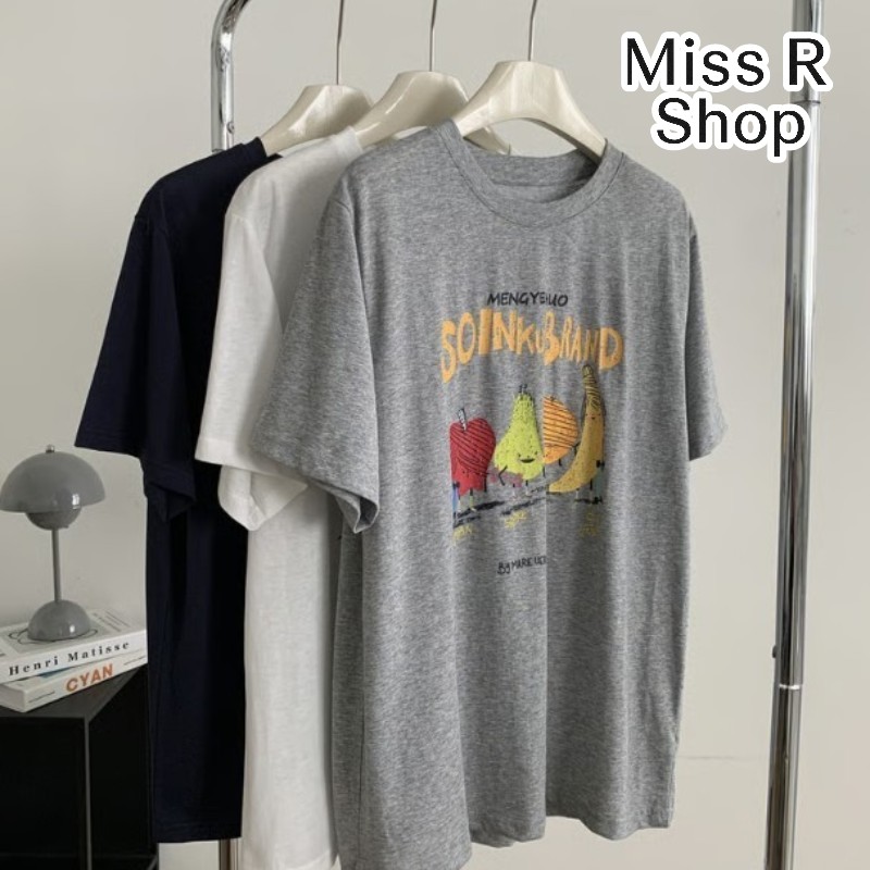 夏日韓系水果印花 慵懶垂感圓領短袖上衣 736