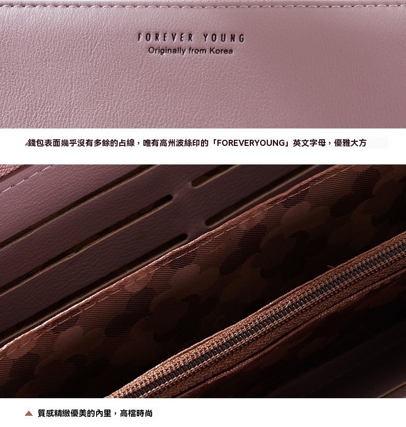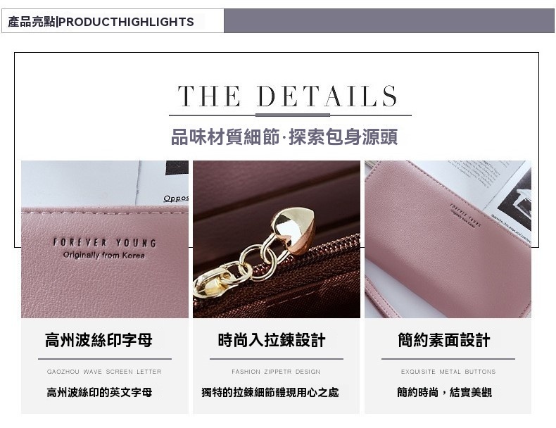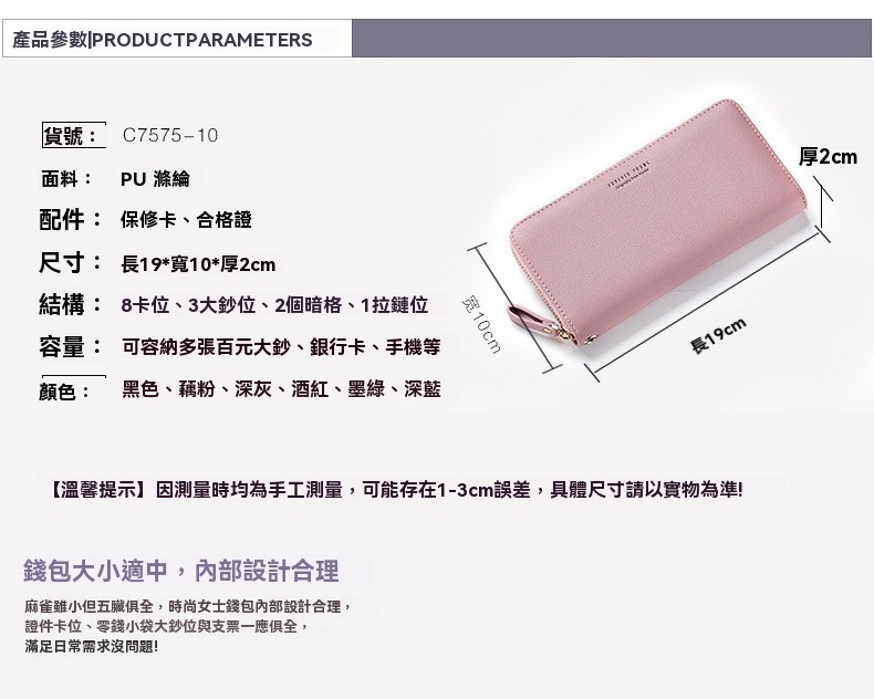 這款女士長款錢包結合了都市簡約風格,設計簡約大方。