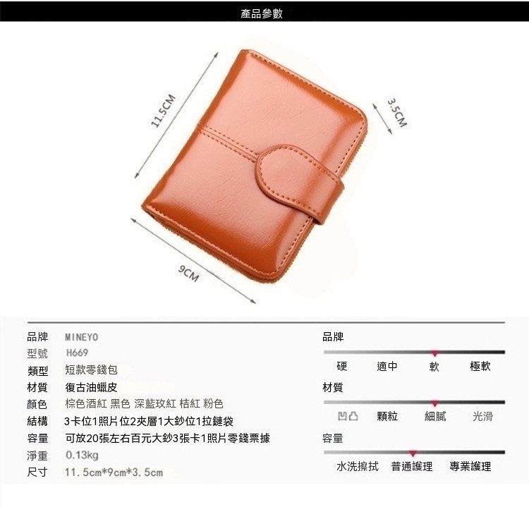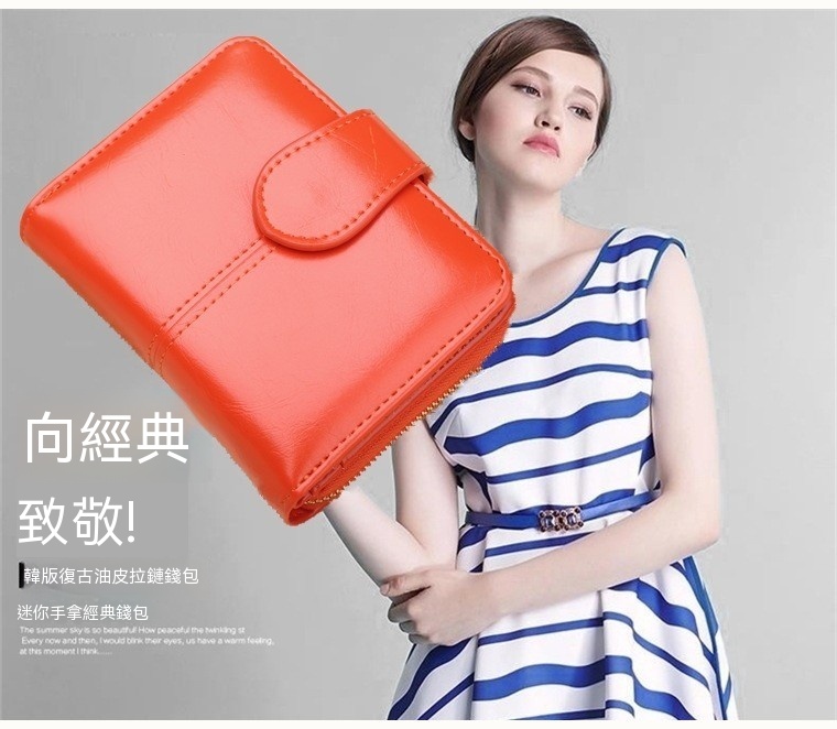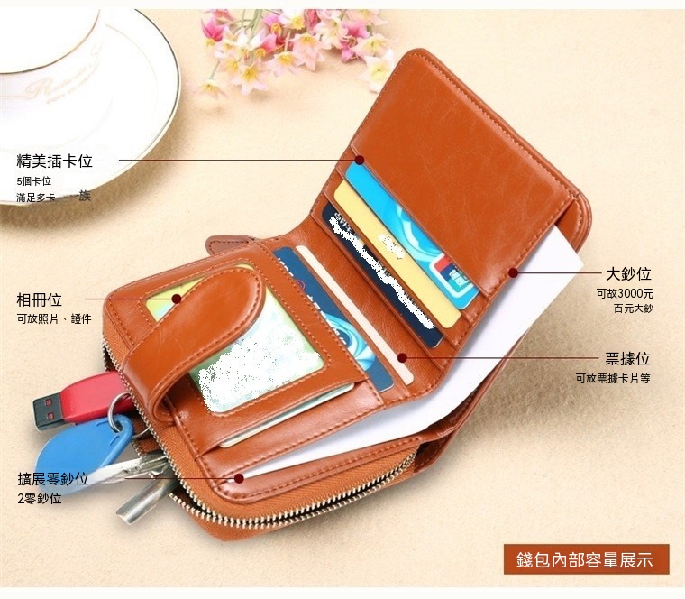 女式短款皮夾 油蠟皮/卡包 大鈔夾 硬幣包 n571