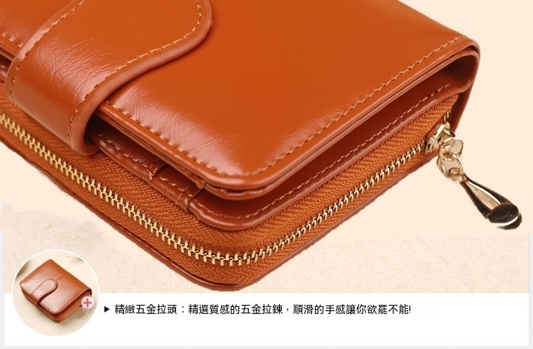 真皮錢包 長款韓版油蠟牛皮 女式多卡位錢夾 n559
