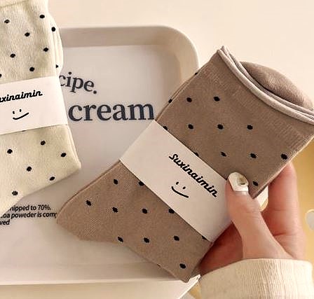 奶油系卷邊點點韓系襪 72