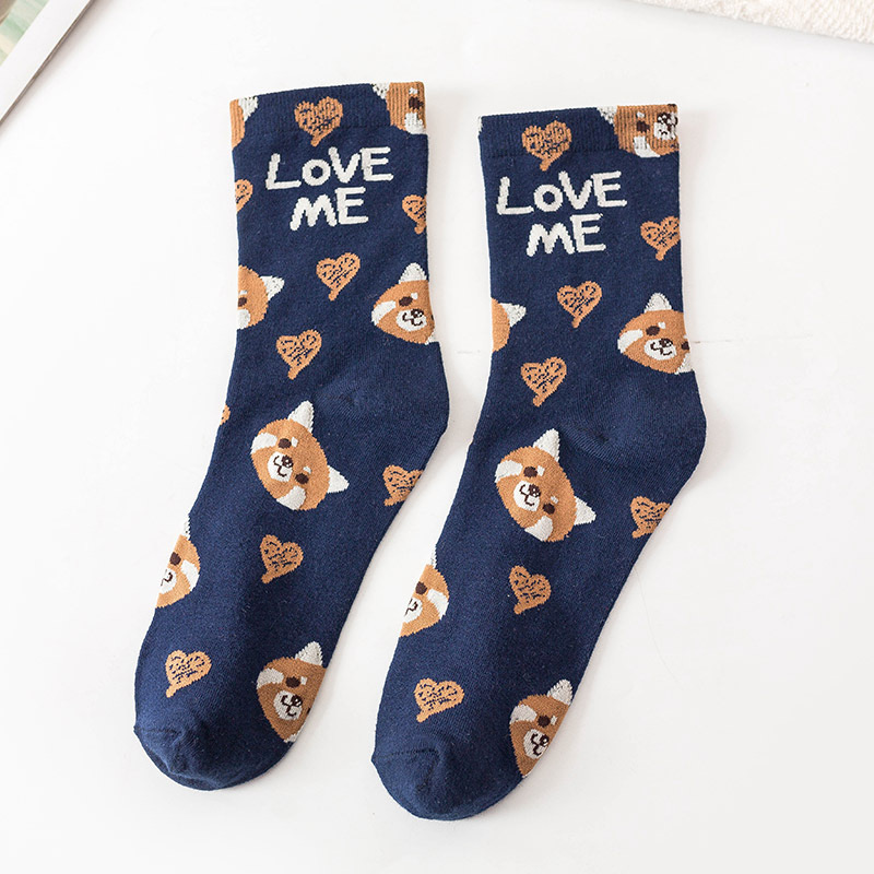 白色小狗網眼襪 夏季薄款中筒ins潮 純棉日系卡通 68