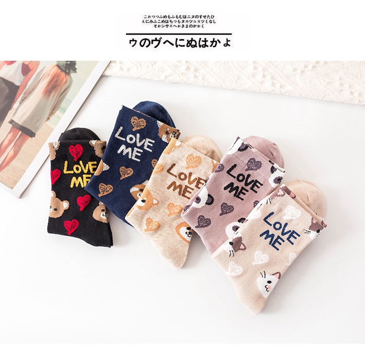 學院風中筒襪 棉運動襪 字母動物潮襪 70