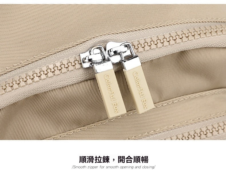 拉鏈設計讓你隨時都能快速取放物品,加上防水功能,突然下雨也不用擔心包包裡的東西會濕掉。