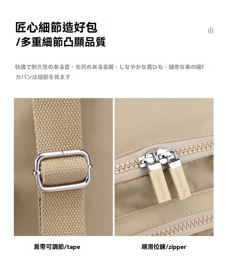 採用牛津布材質,不僅輕便還非常耐磨,無論是日常通勤還是戶外活動都能輕鬆應對。