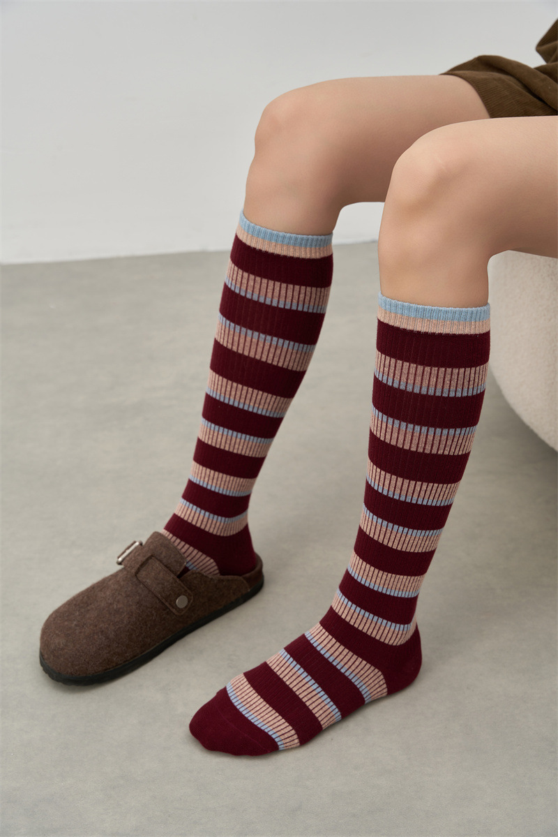 復古條紋撞色 針織堆堆長筒襪 顯瘦小腿襪 69