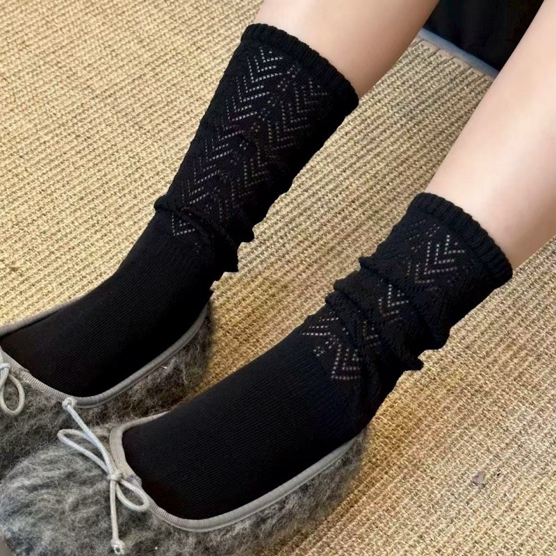日系ins 菱格小香風中筒襪 鏤空網眼襪 n113