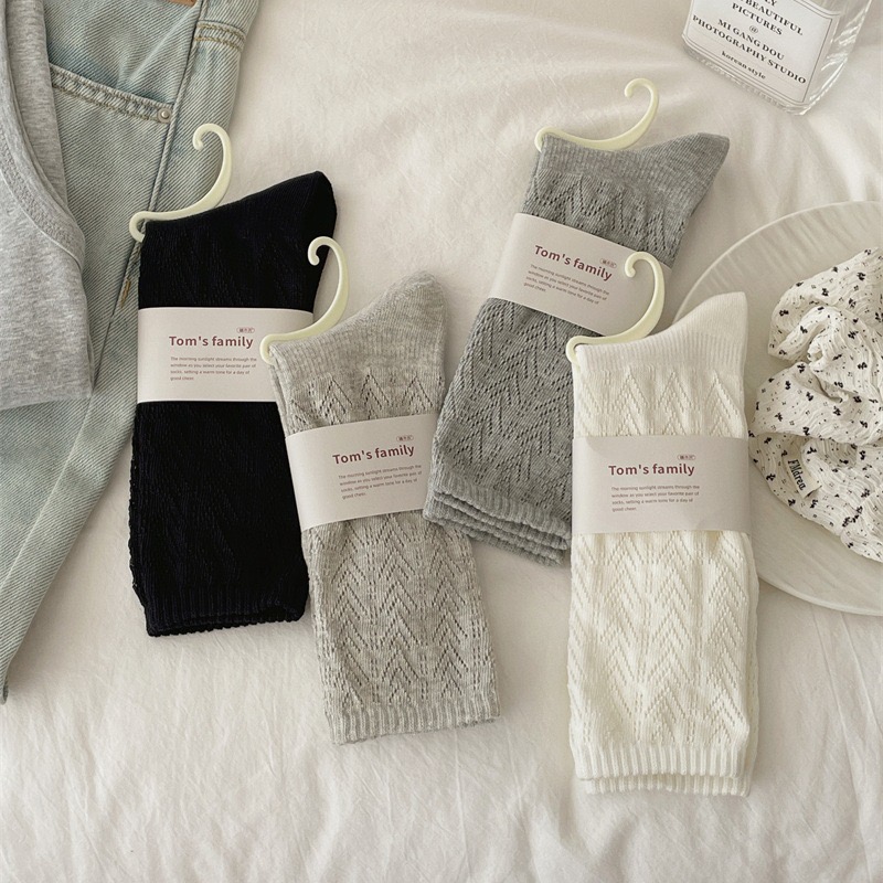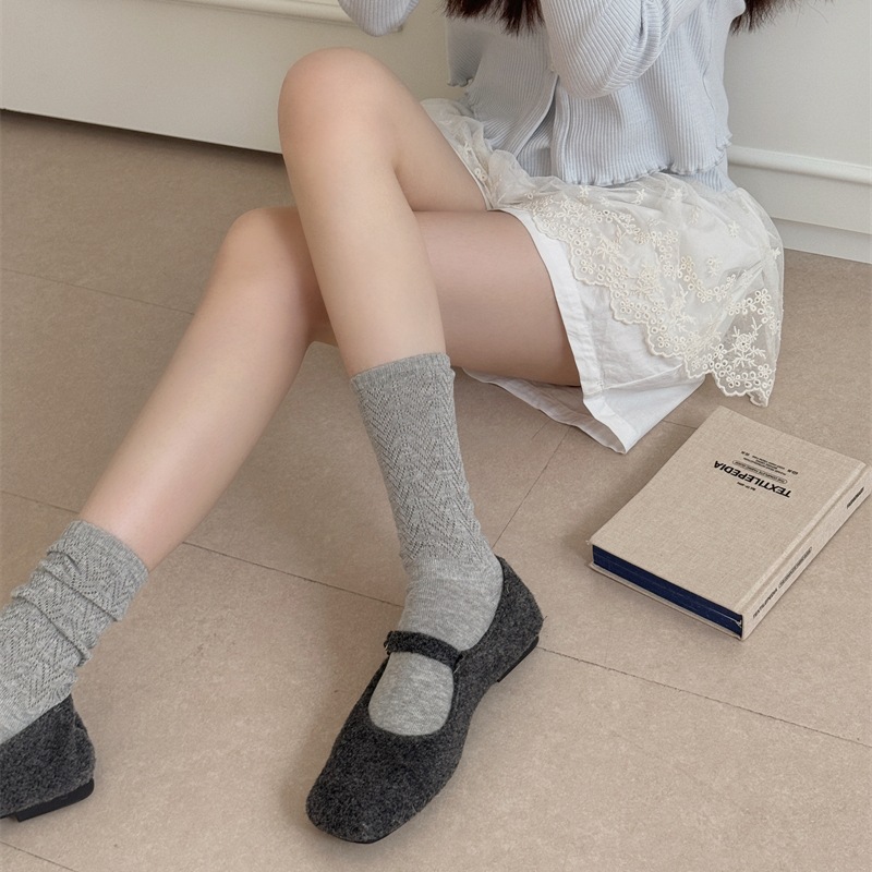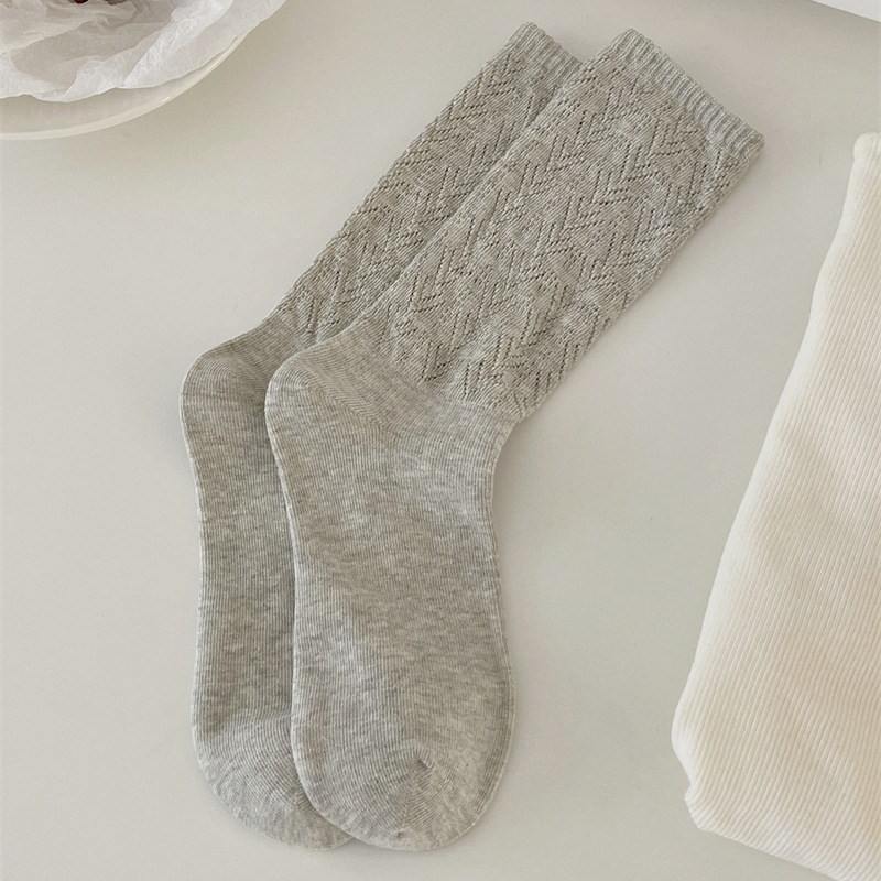 純棉復古暗花襪 中筒襪學院風 時尚女棉襪03