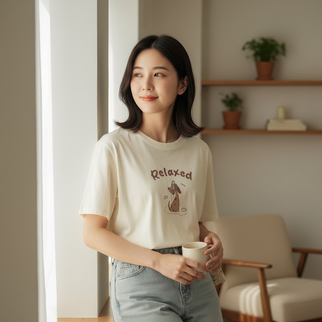 春夏可愛斑點狗 短袖T恤 韓系日系 純棉透氣 寬鬆顯瘦 正韓感 萌系插畫 ins百搭 n60004