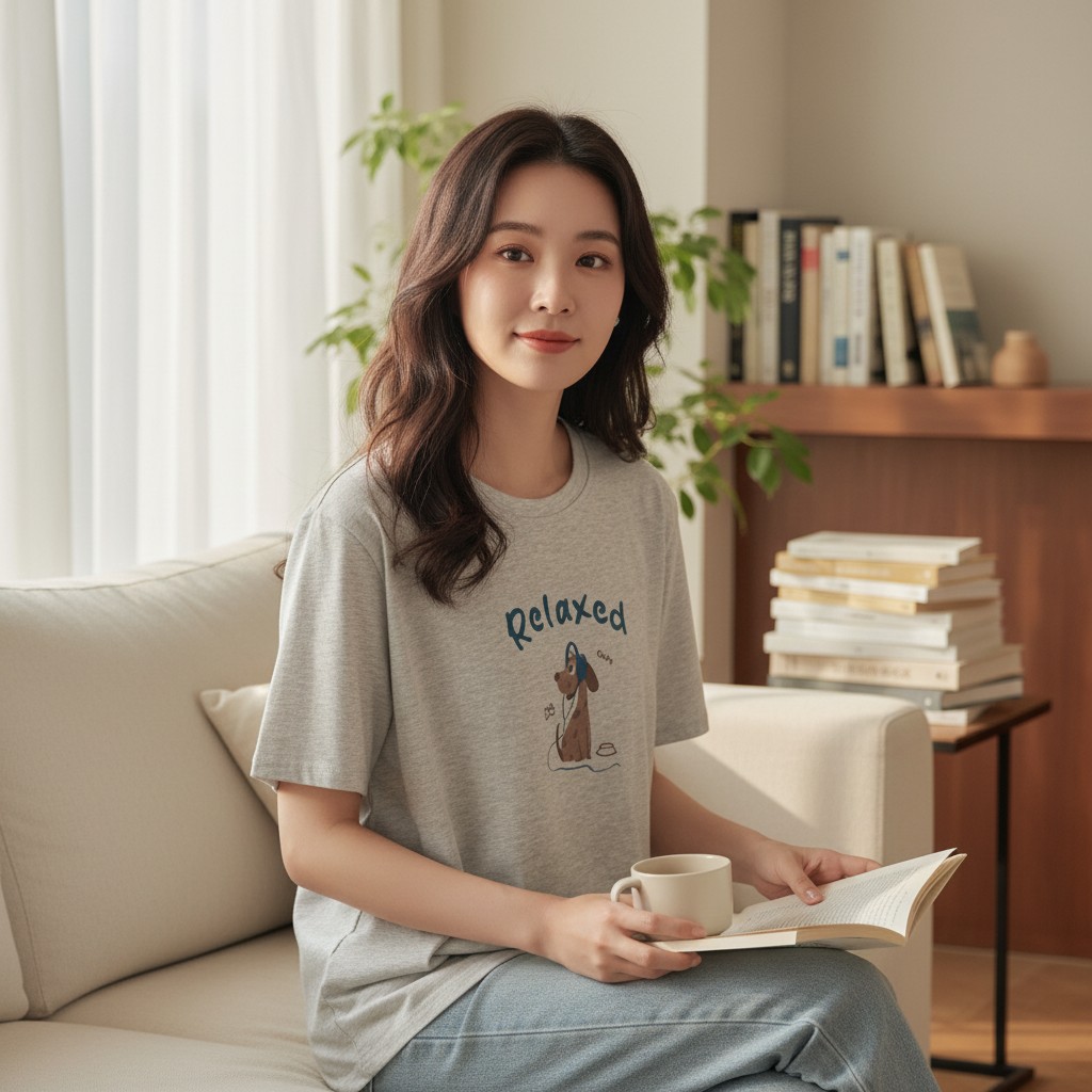 春夏可愛耳機狗 短袖T恤 韓系日系 純棉透氣 寬鬆顯瘦 正韓感 萌系插畫 ins百搭 n60005