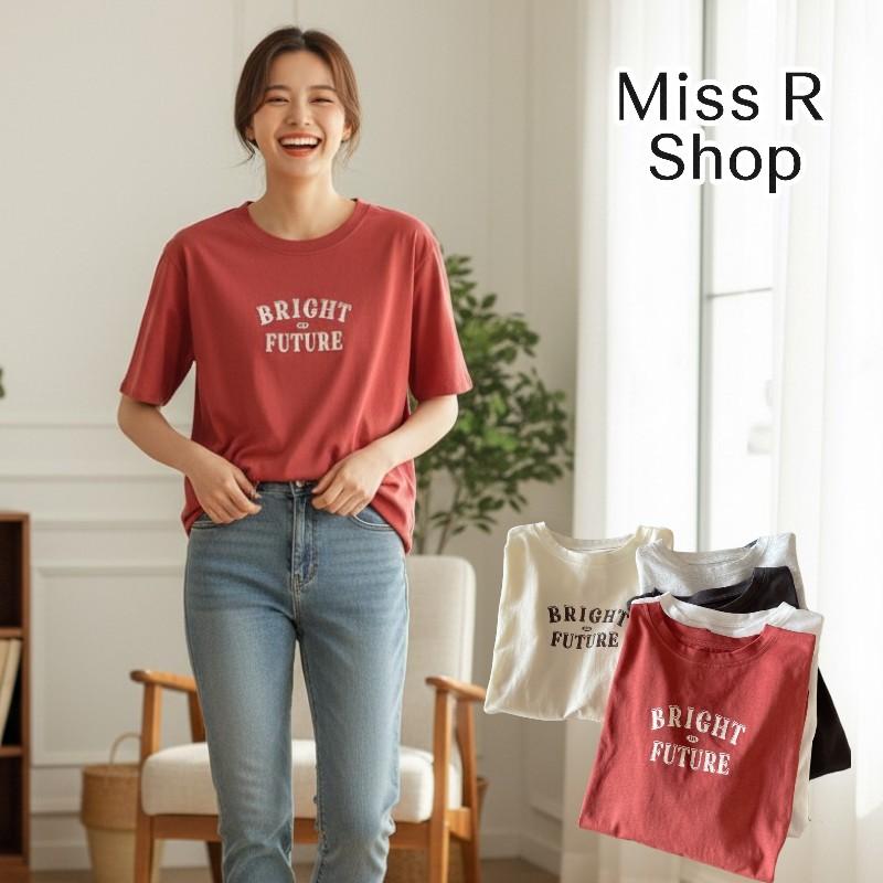 春夏小清新 BRIGHT 印花 短袖T恤 韓系日系 純棉透氣 字母上衣 寬鬆顯瘦 韓感 ins百搭 學生 n60001