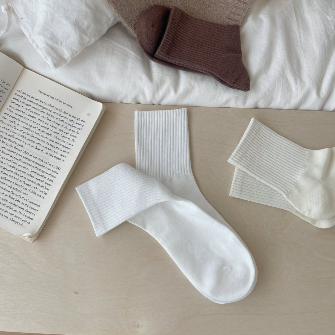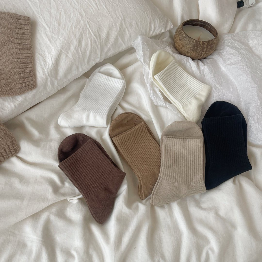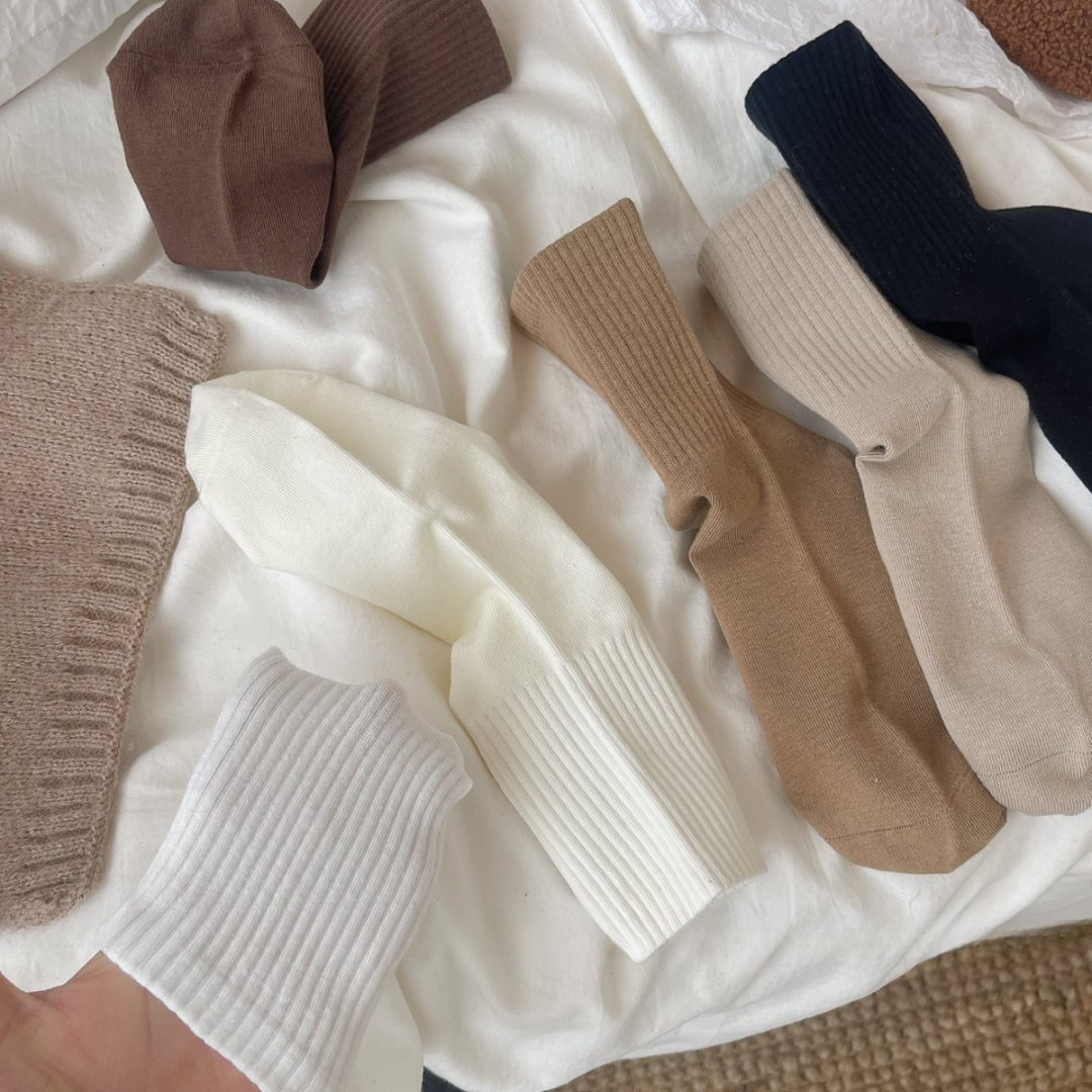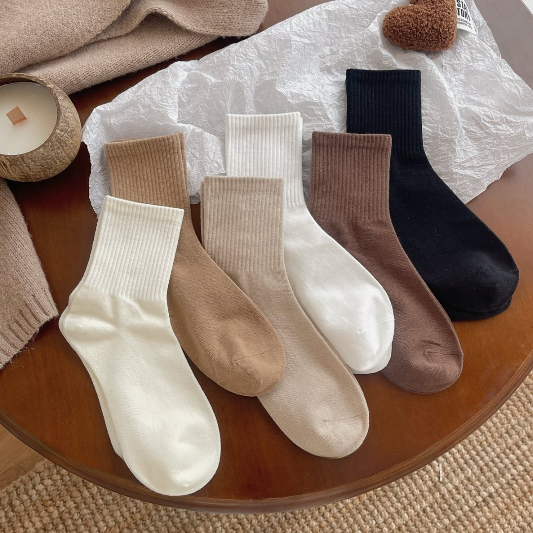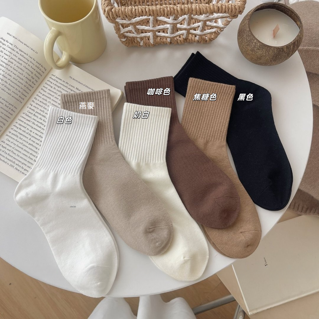 高羅口純色 女士中筒襪 百搭韓版精梳棉襪 55