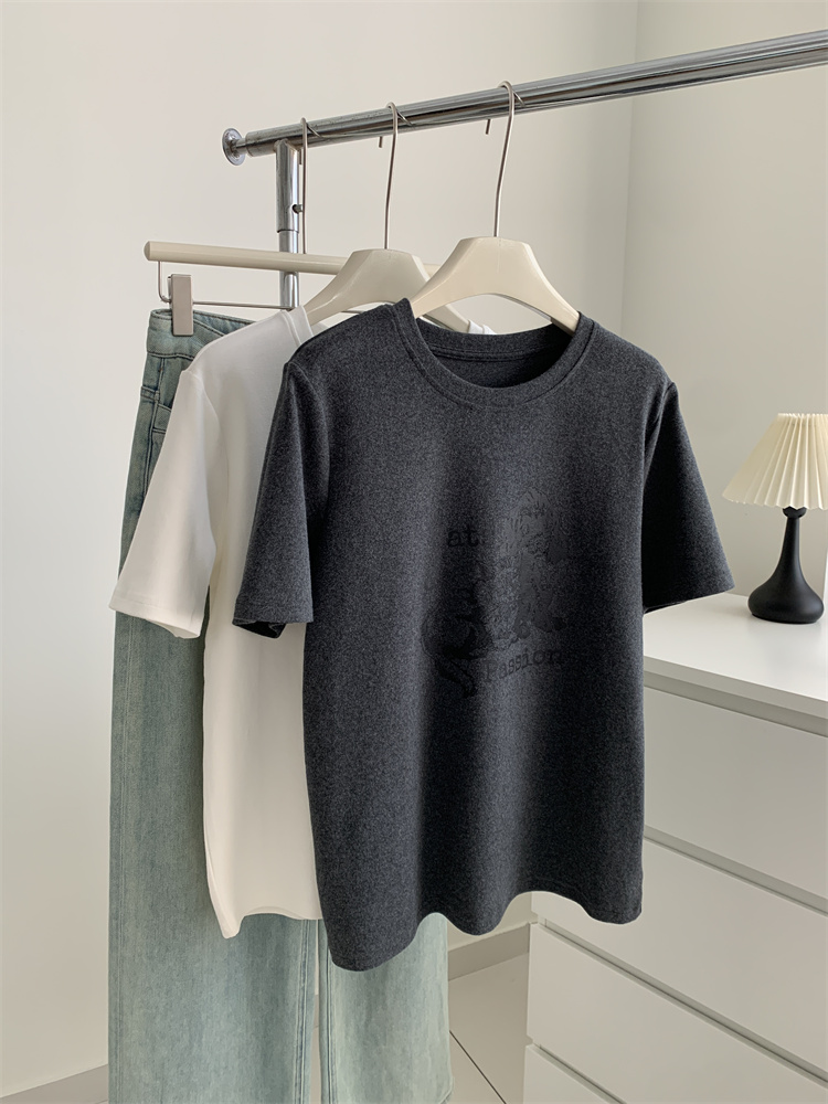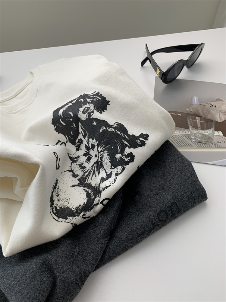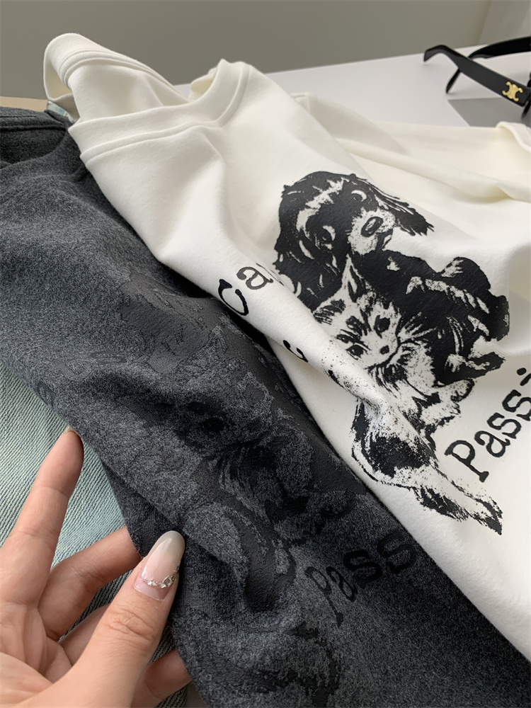 (春秋款)圓領正肩短袖 小狗磨毛T恤 714