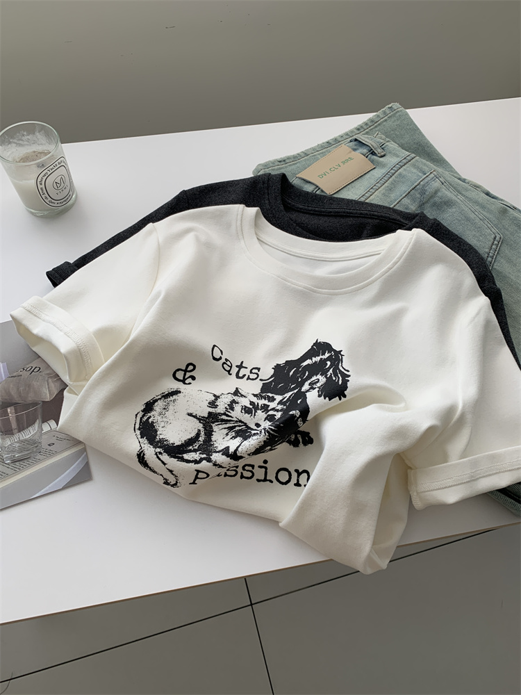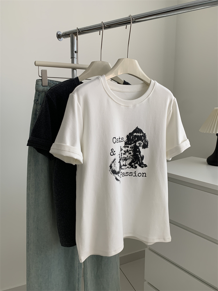 日系女裝短袖t恤 卡通印花半袖圓領上衣 春秋款 741