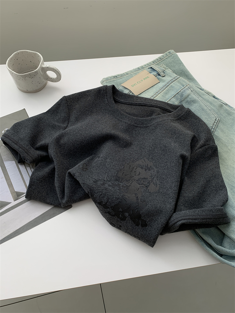 (春秋款)百搭汽車卡通 顯瘦灰色短袖T恤 715