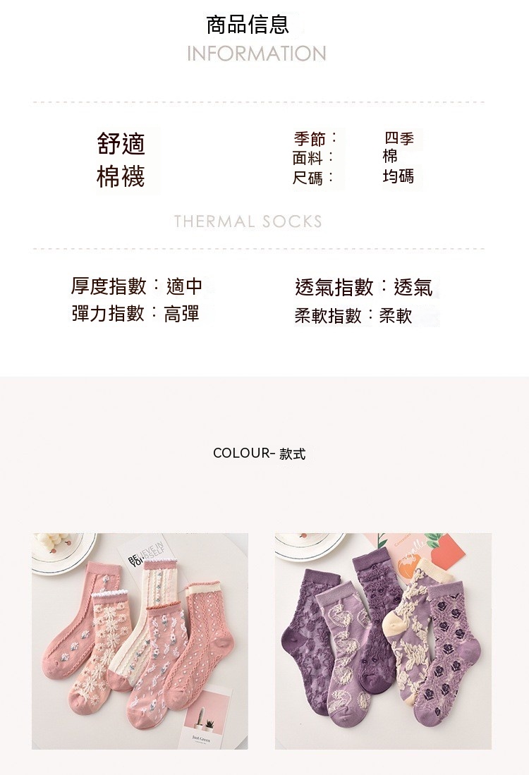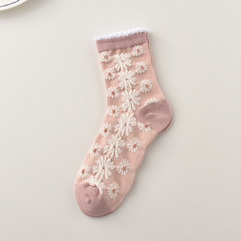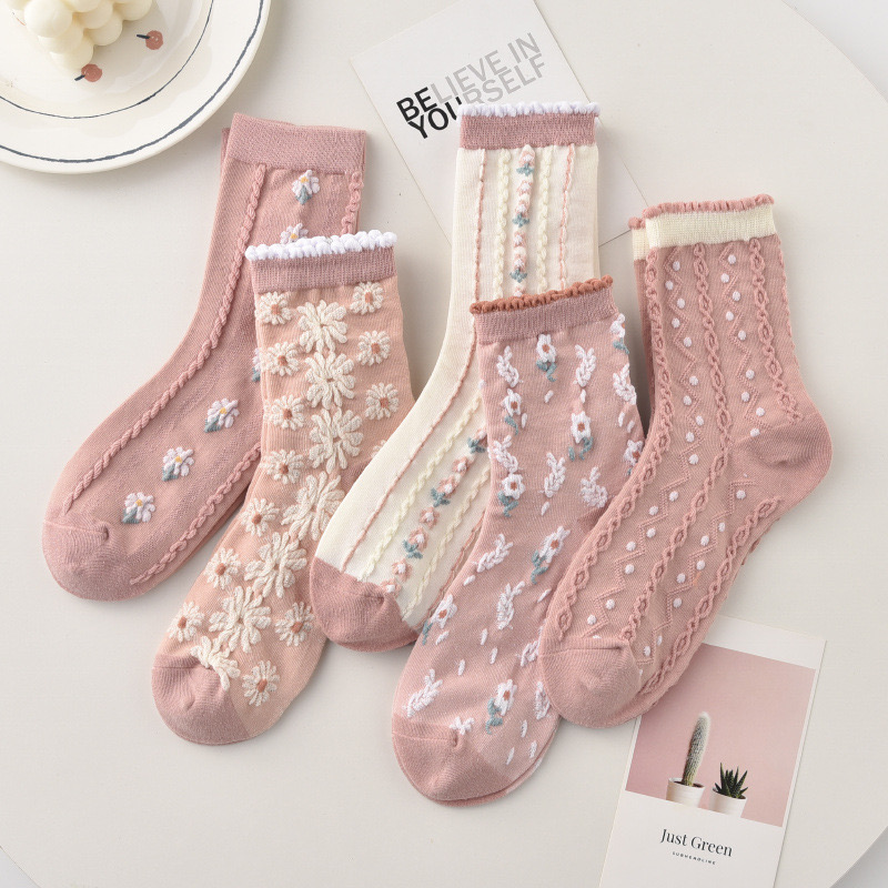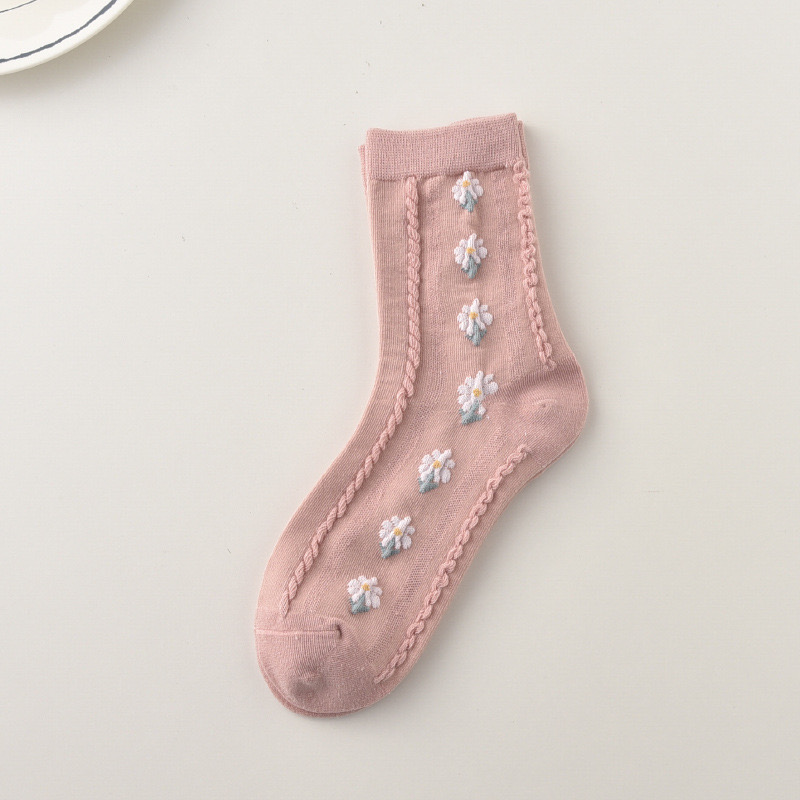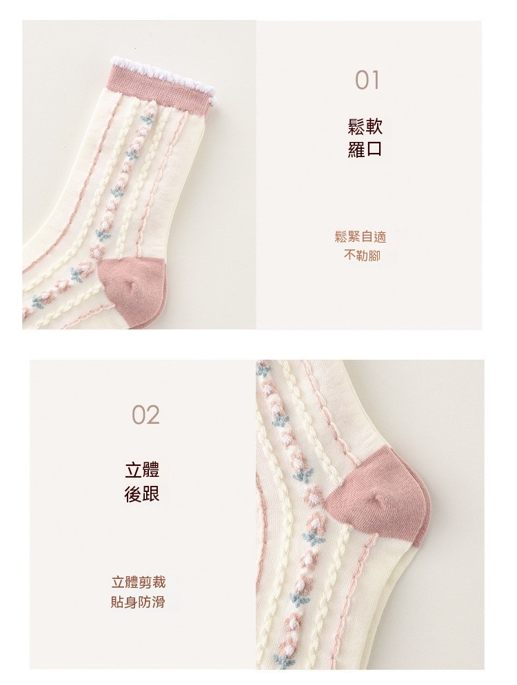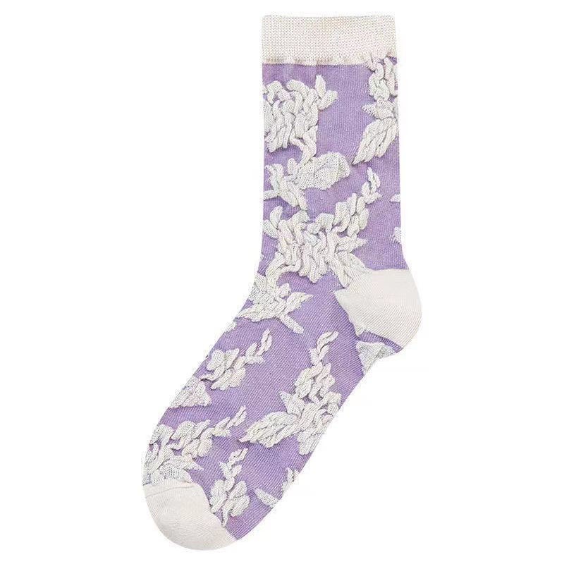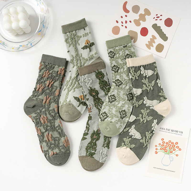 森林系ins潮襪 中筒襪花紋 立體小花女棉襪 100