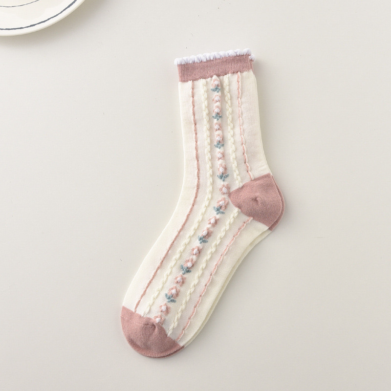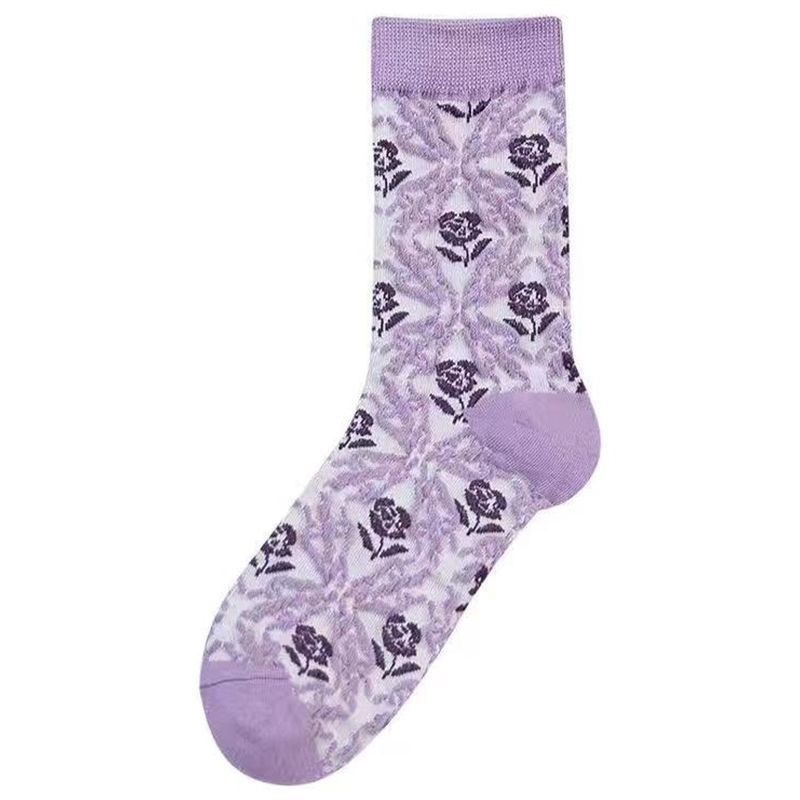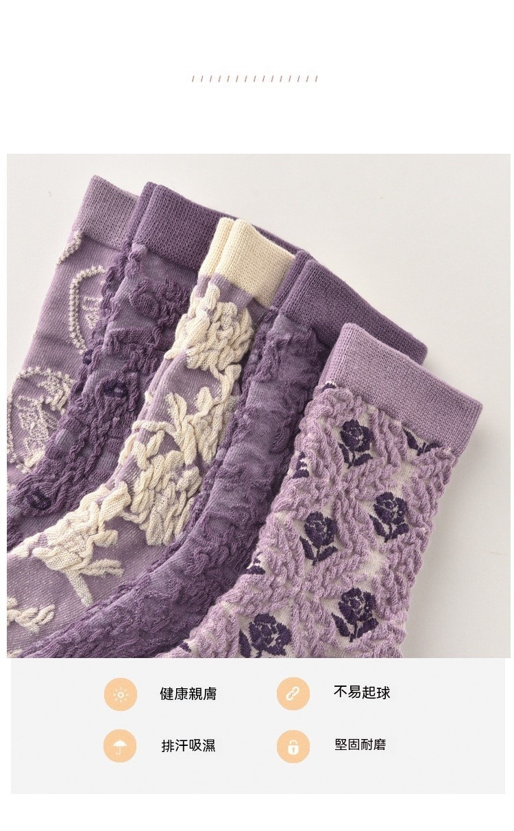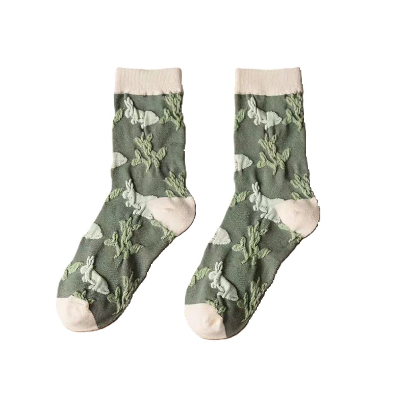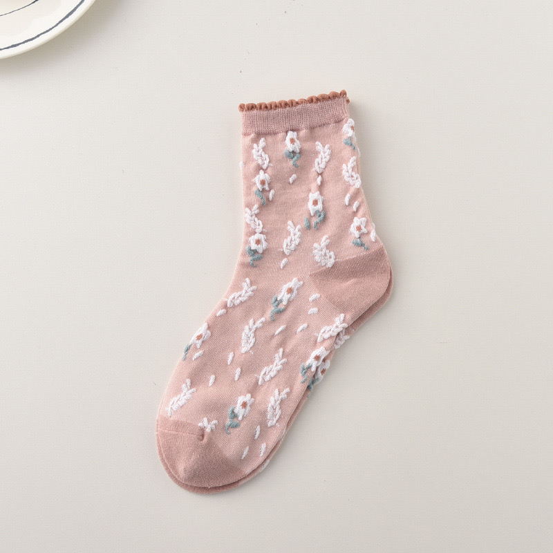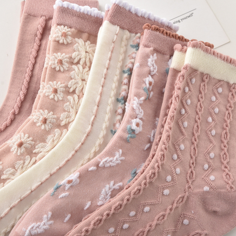森林系ins潮襪 中筒襪花紋 立體小花女棉襪 100