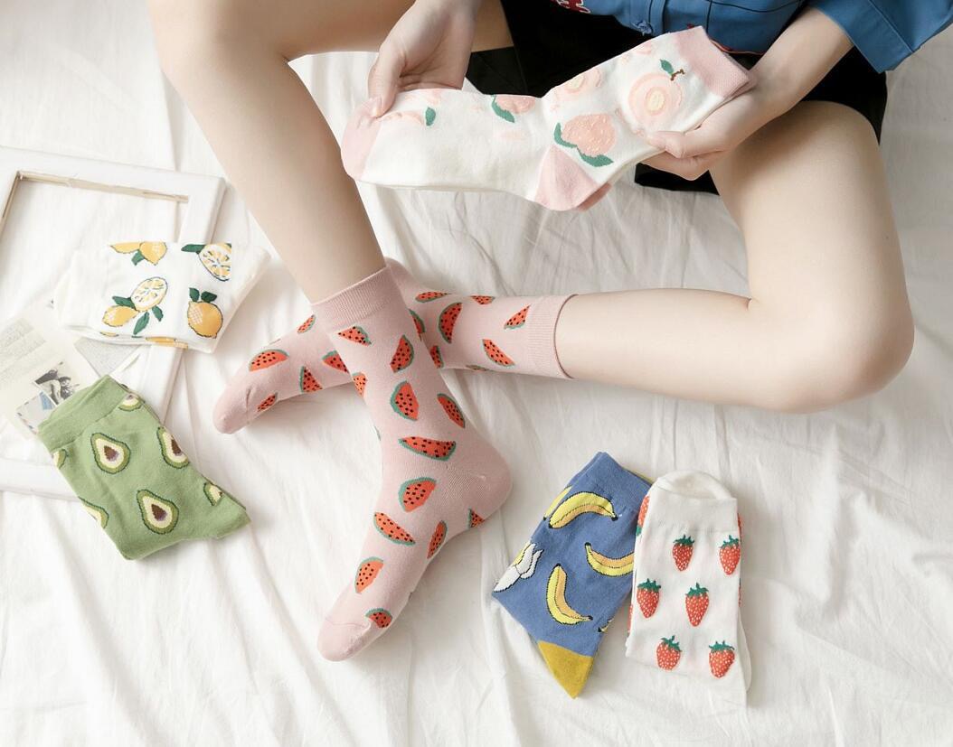 這款水果系列中筒襪真的超可愛!採用82%的優質棉料,穿起來柔軟又透氣,腳感很舒服,