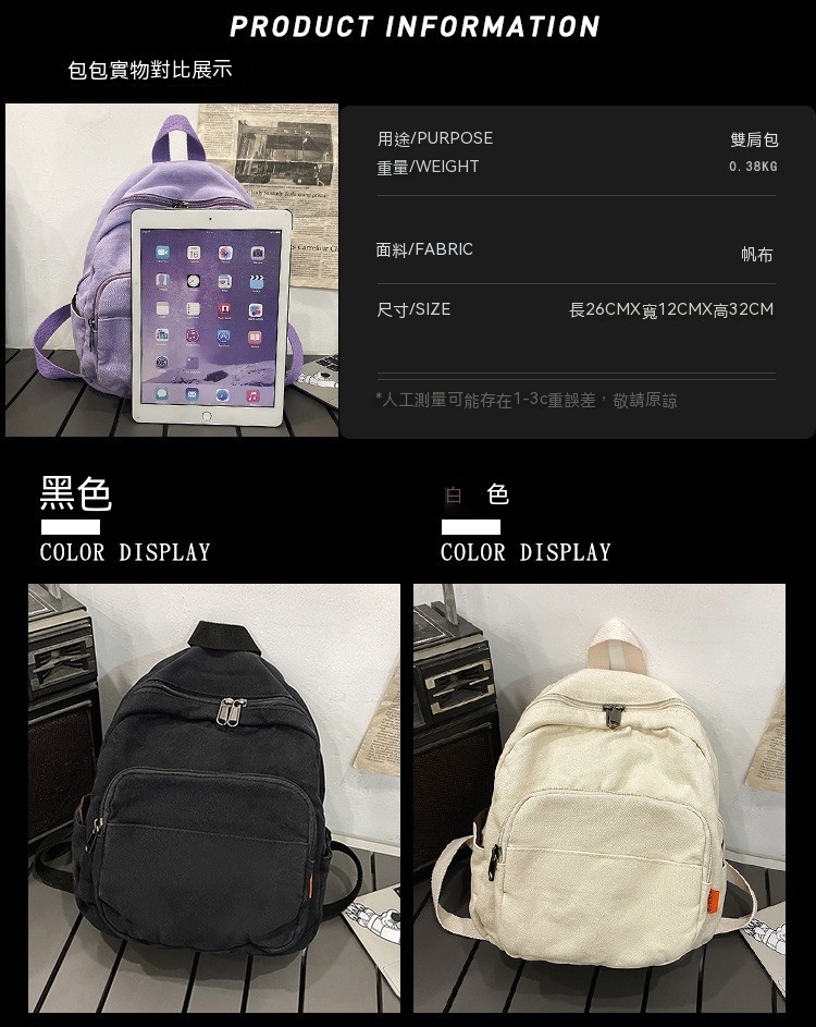 水洗ins 復古旅行小背包 帆布雙肩包 545