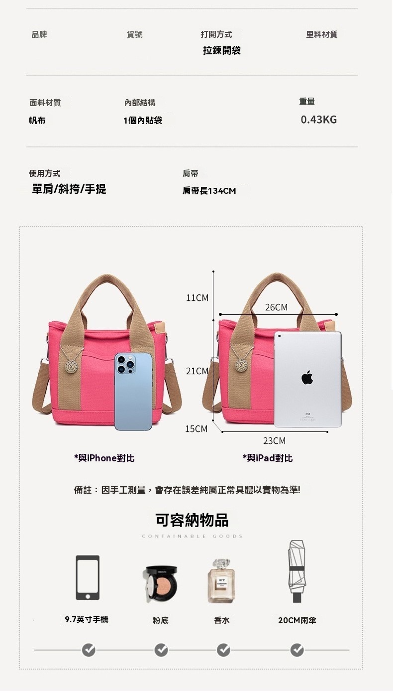 大容量包 帆布通勤手提包 百搭 簡約 501