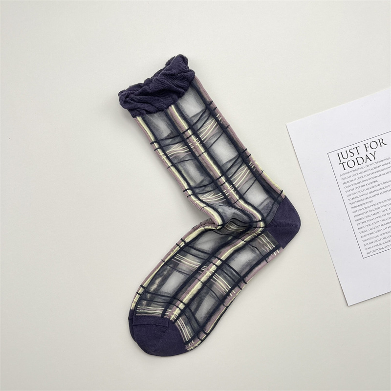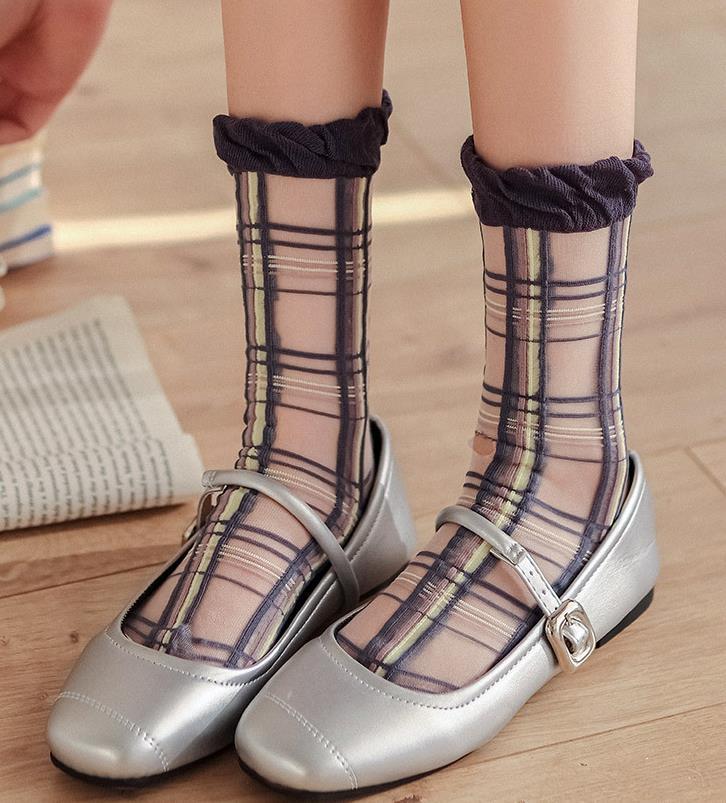 小格子甜美鬆口韓版襪 01