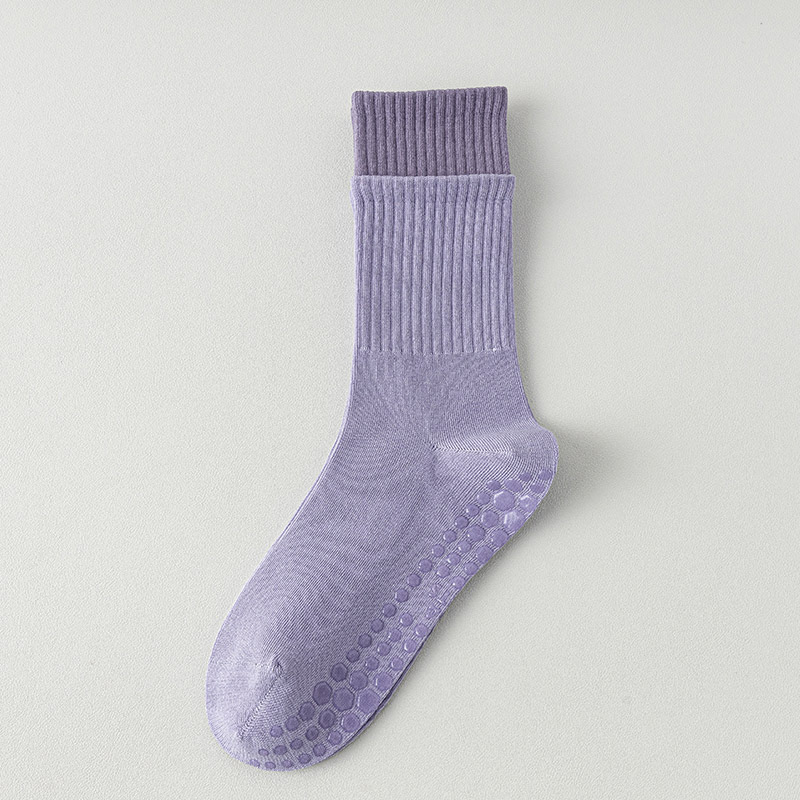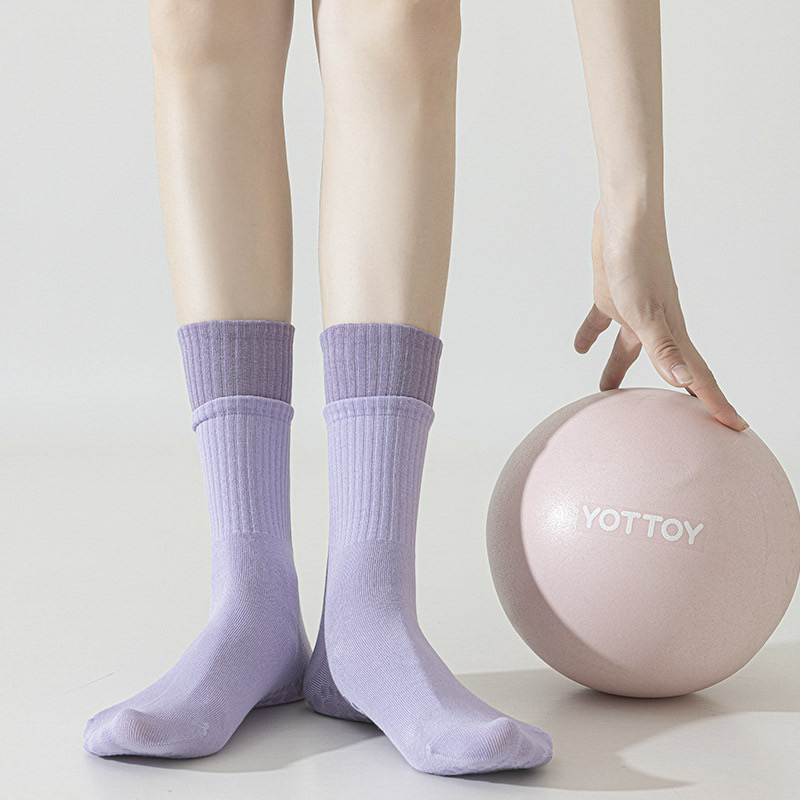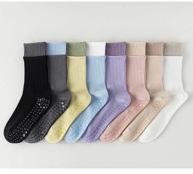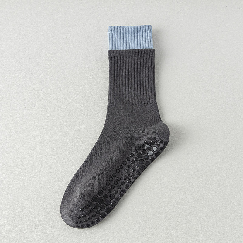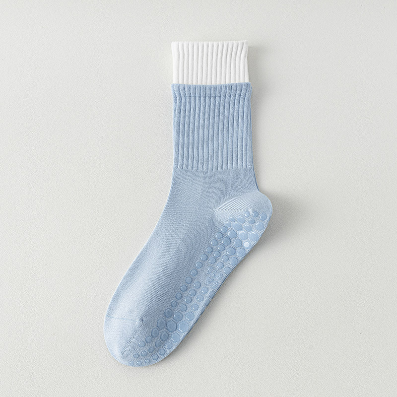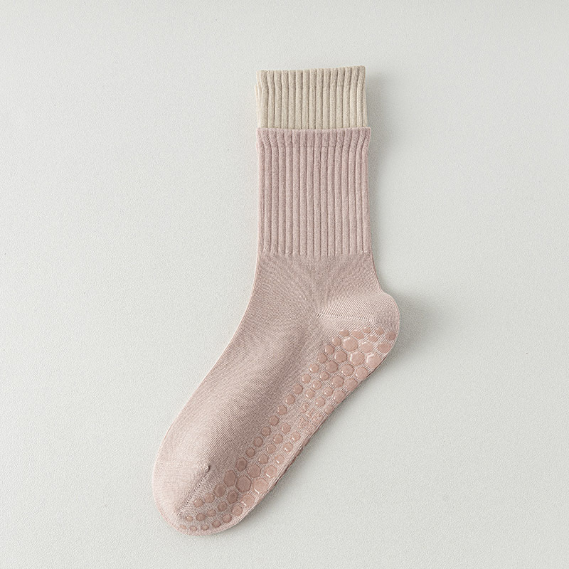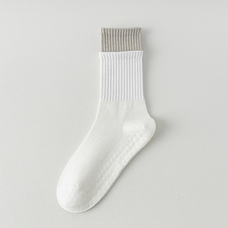 秋冬季吸汗運動襪 女士瑜伽點膠防滑 拼色長襪 n107