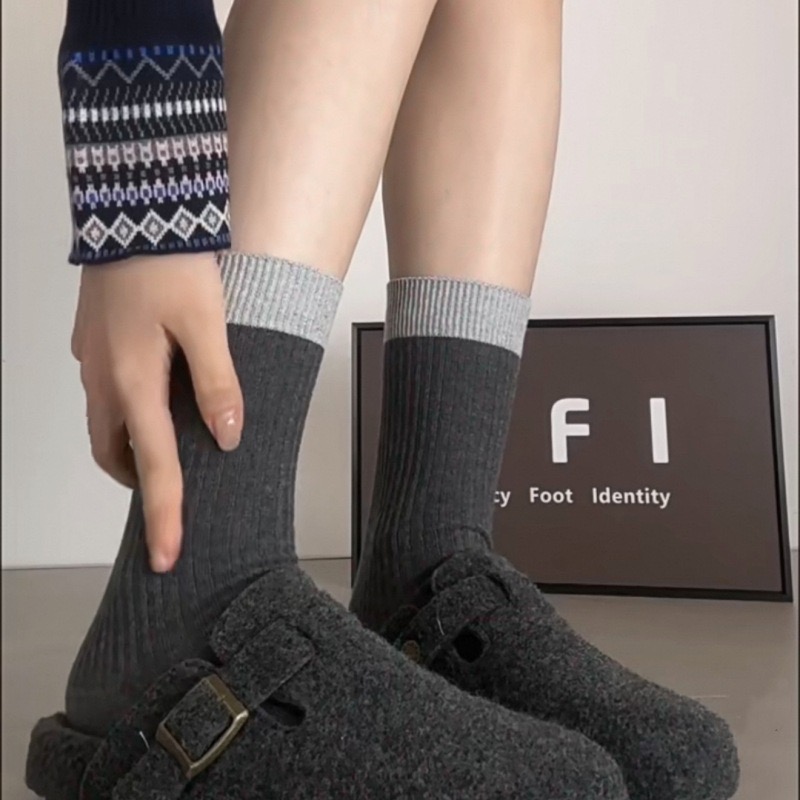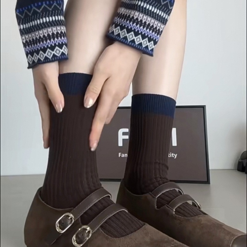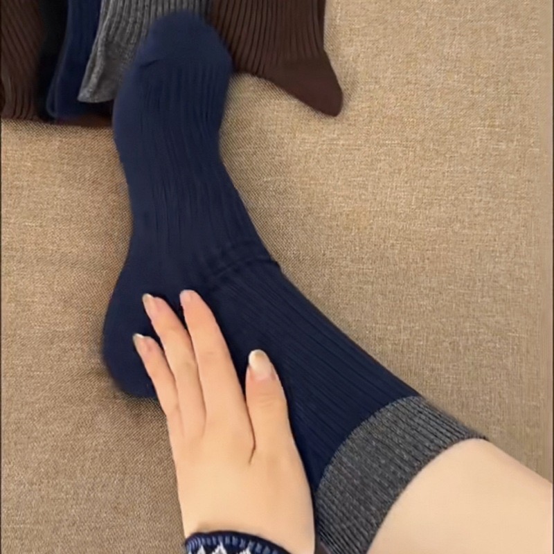 秋冬復古藏青色棕色 ins潮中筒襪 百搭不勒腿 n124