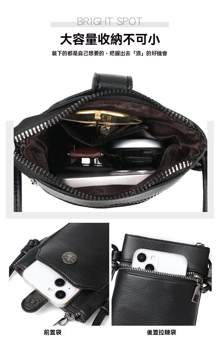 尺寸設計得恰到好處,長13公分、寬1公分、高18公分,剛好能放下手機和零錢。