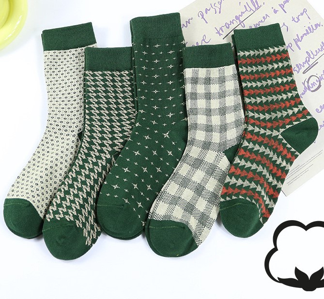 綠色英倫復古風 韓版中筒襪 ins潮襪韓版棉襪 27