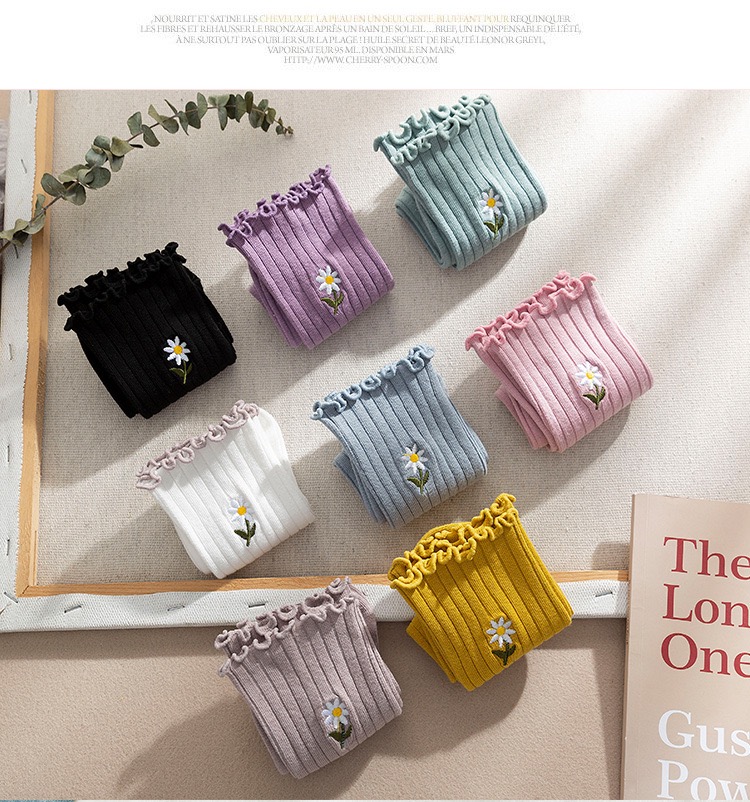 網紅襪子 中筒日系小菊花 薄款堆堆襪 65