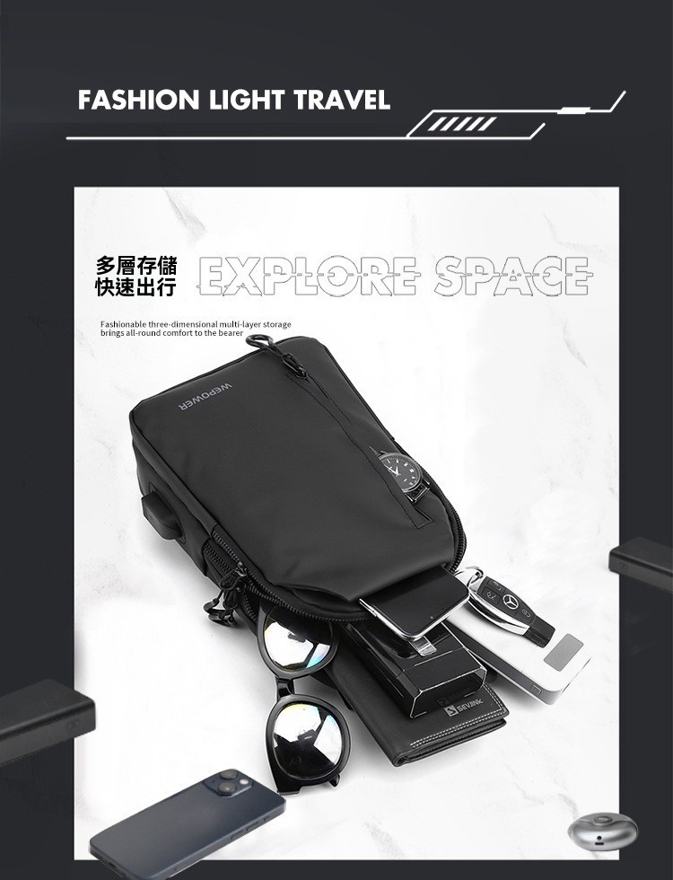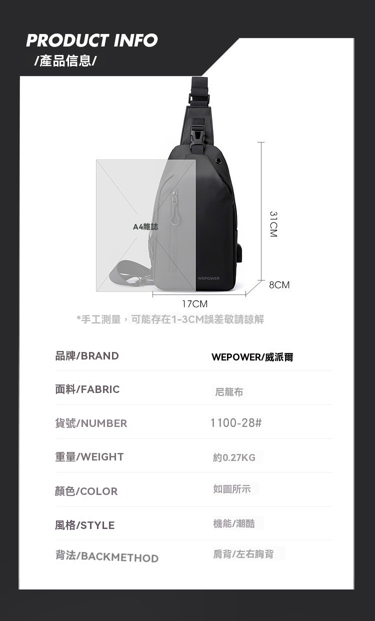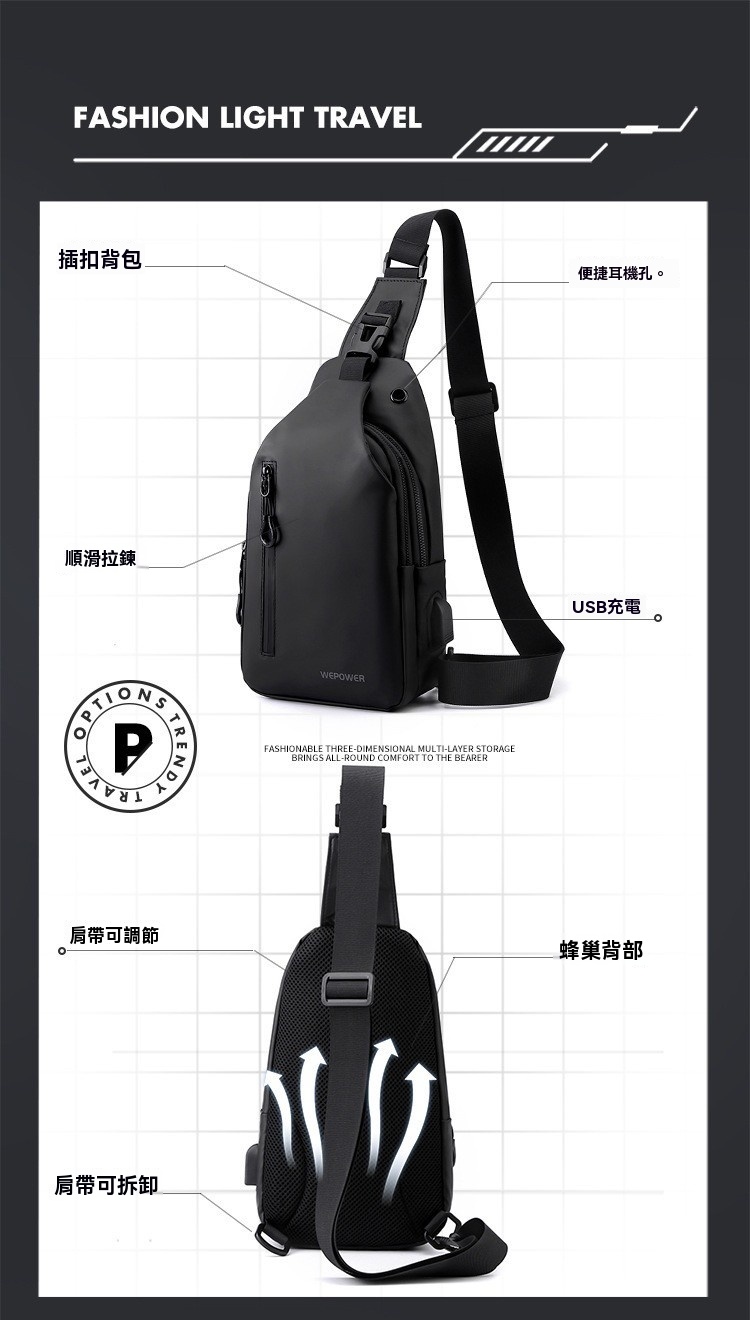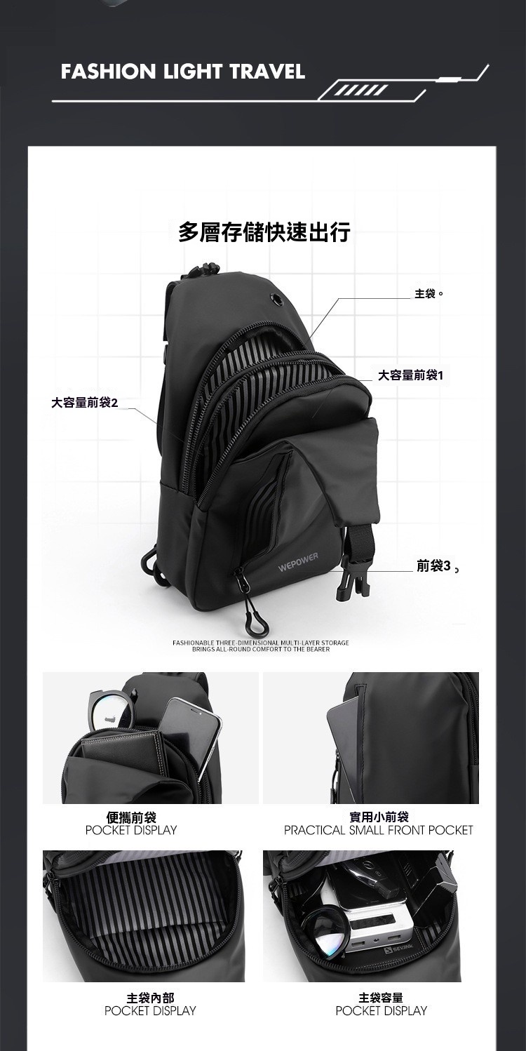 胸包休閒大容量 單肩斜挎包 防潑水潮流背包 553