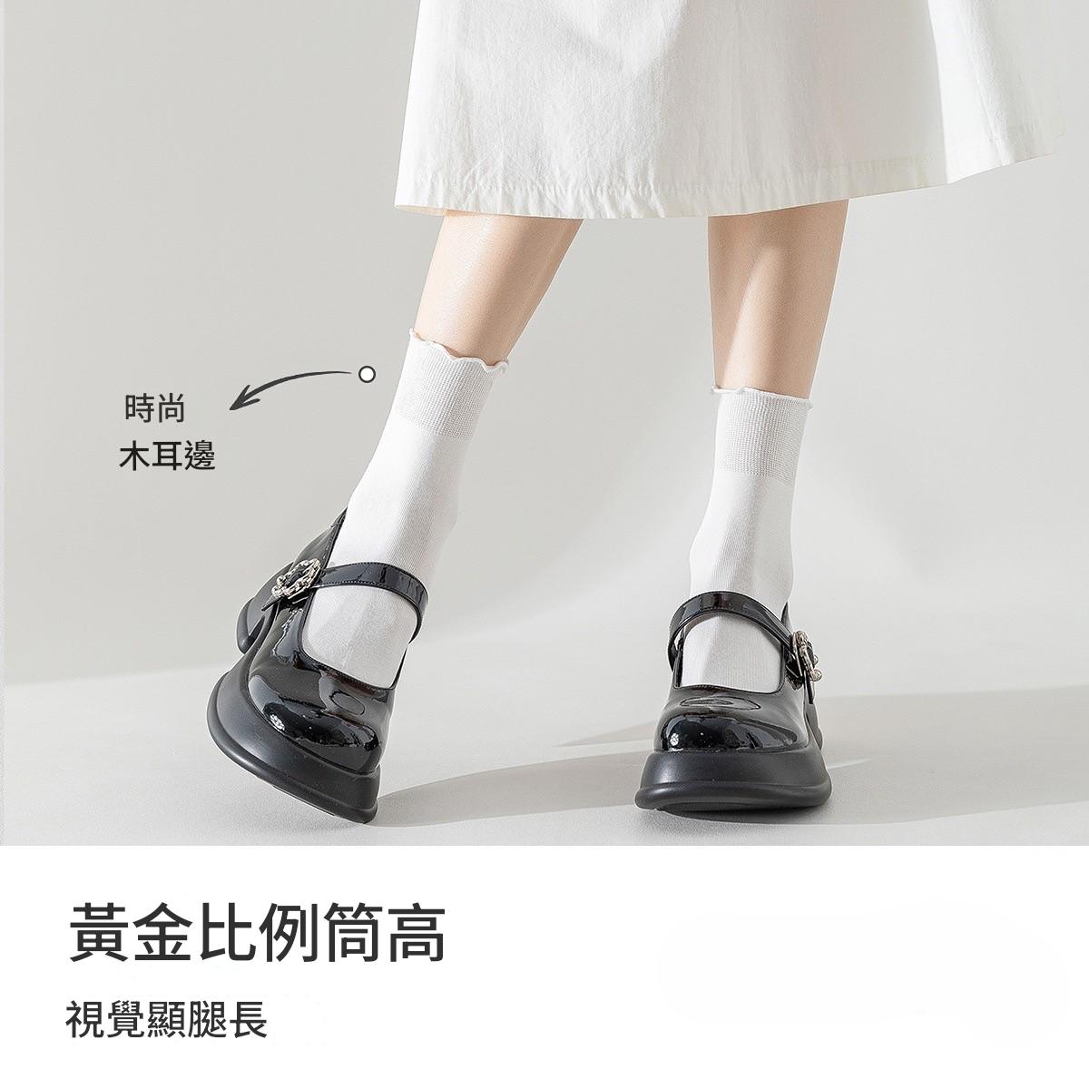 精緻花邊設計,搭配堆堆襪造型,時尚感十足。