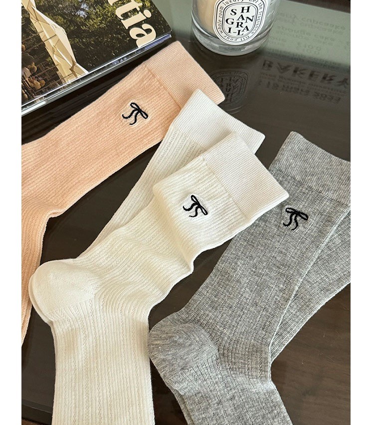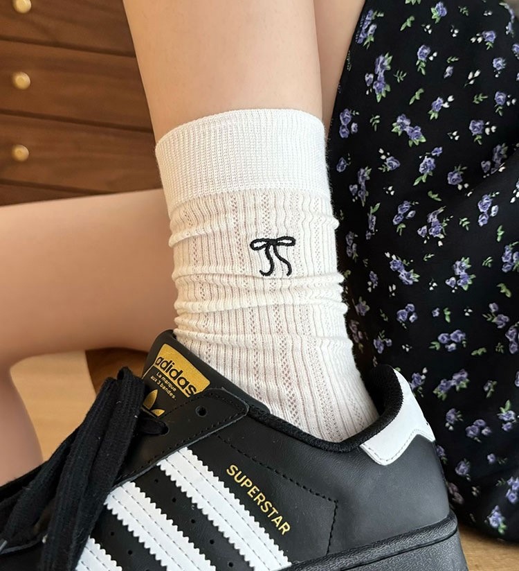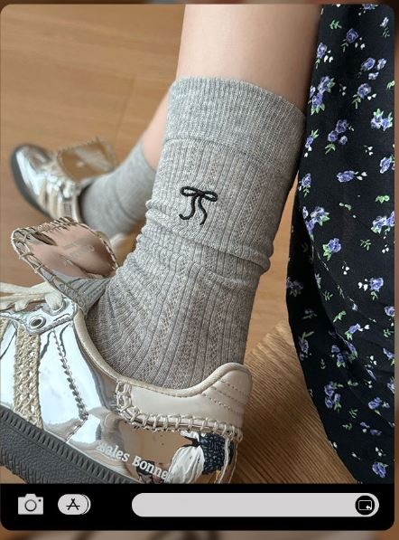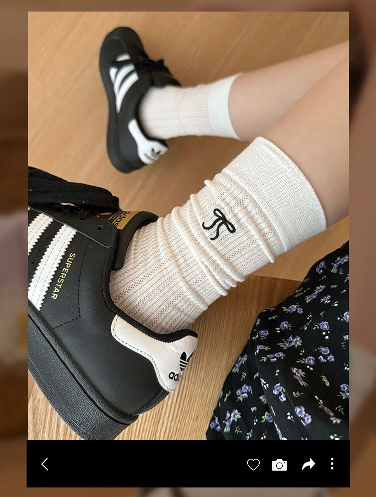 蝴蝶結襪子 中筒襪純棉透氣薄款堆堆襪 79