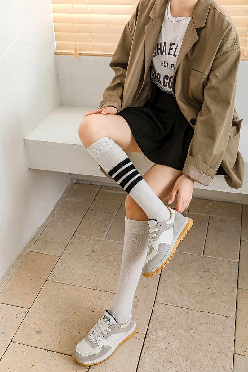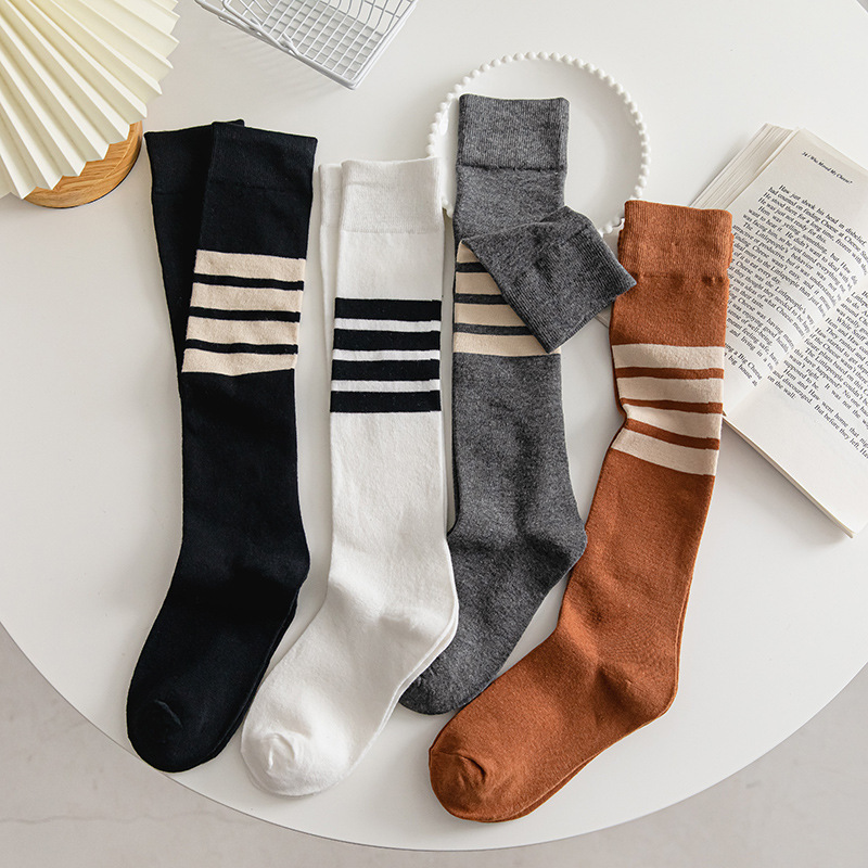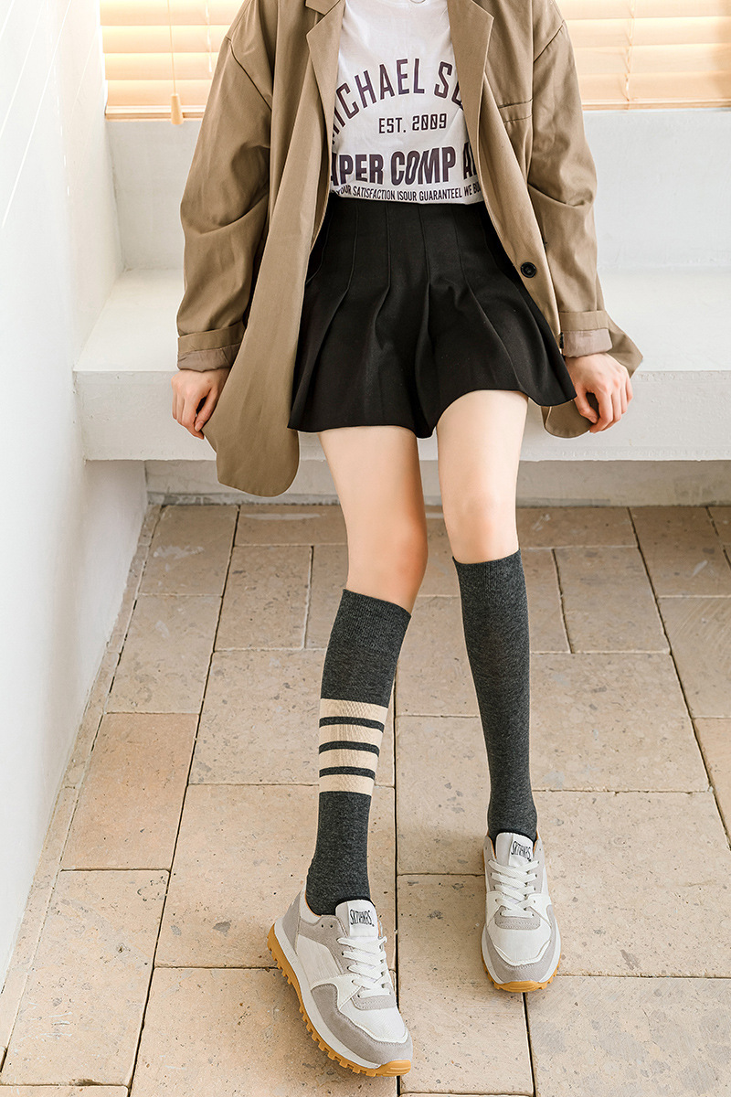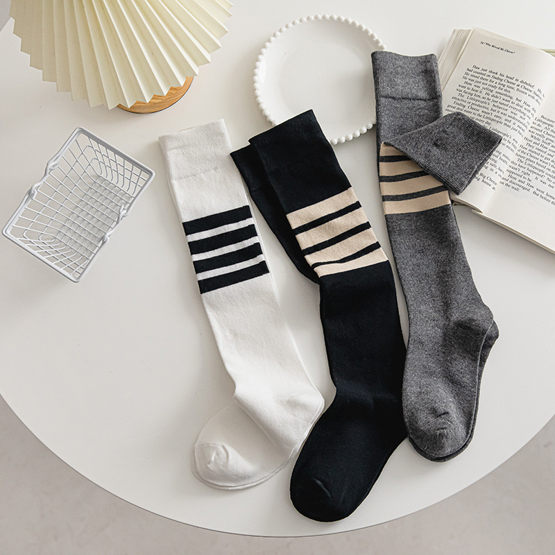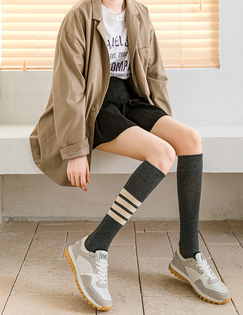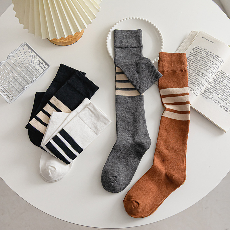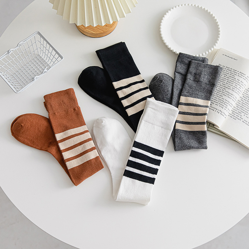 (厚襪) 日系撞色粗線條紋 秋冬學院風 百搭純棉襪 n120