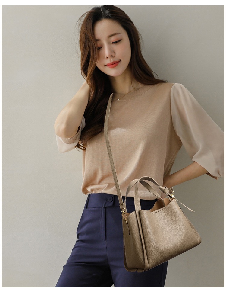 這款軟皮PU材質手提包,不僅有著菜籃包的經典造型,還散發出滿滿的高級感!