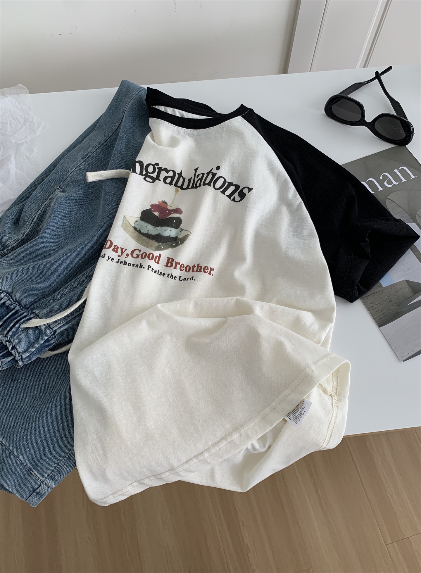 撞色印花 純棉短袖T恤 日系學院風寬鬆休閒上衣 740