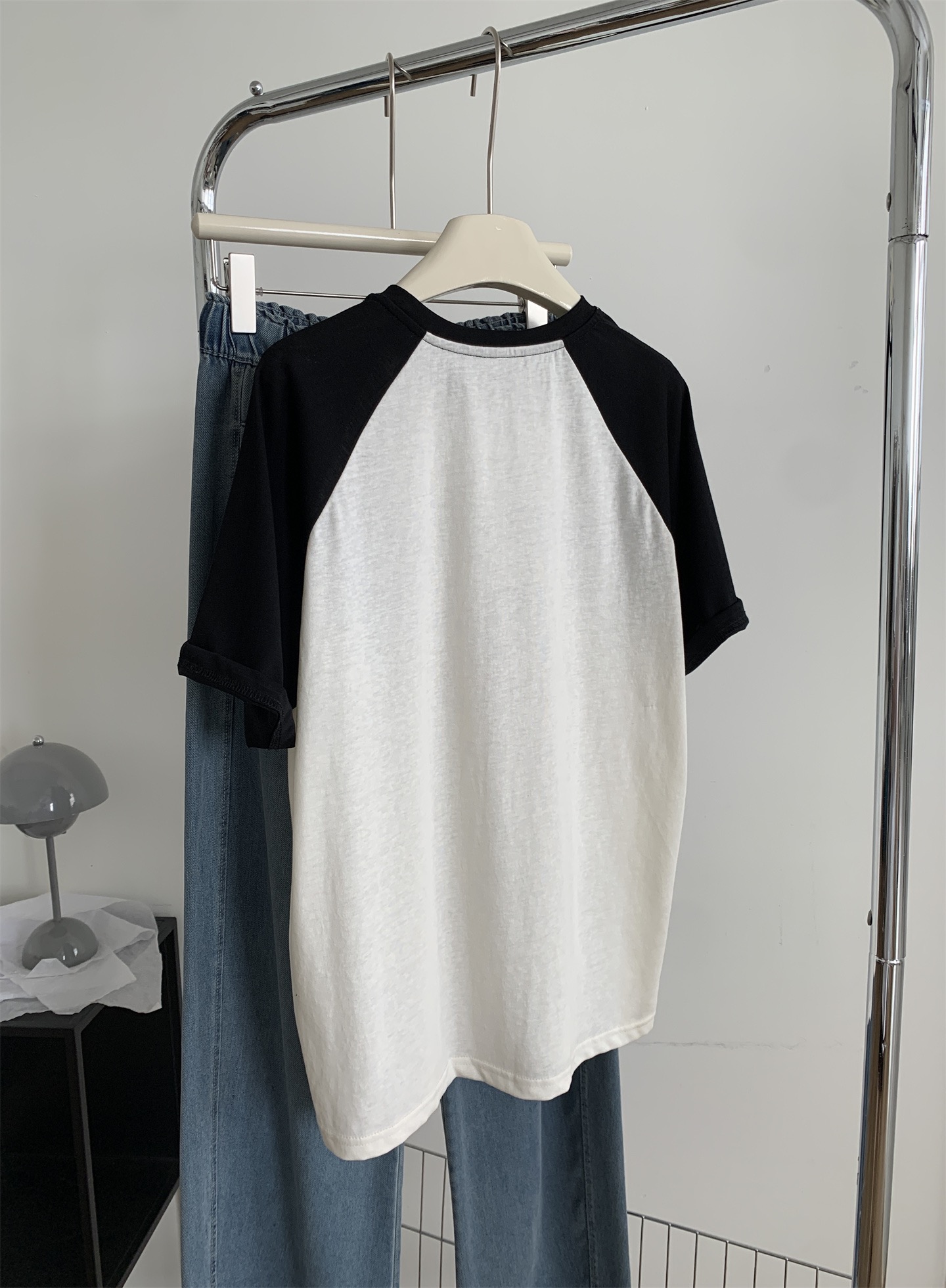 插肩袖設計修飾肩型,垂感面料自然順滑,展現休閒自在的韓系氛圍。